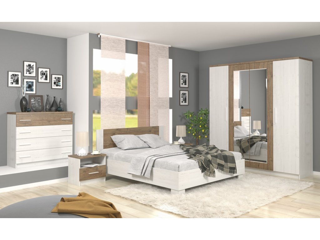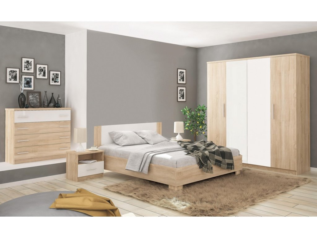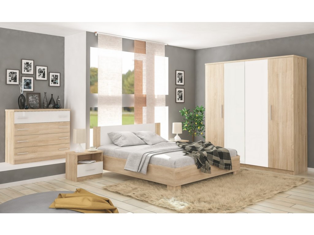 Sestava do ložnice ze sektorového nábytku v moderním provedení v jemných barvách dokonale doplní Váš interiér. Nábytek je vyroben z kvalitní LTD desky v barevné kombinaci dub sonoma / bílá. Nabídka komponentů této sektorové řady umožňuje sestavit si nábytek do ložnice nebo studentského pokoje dle vlastních představ. Sestava se skládá z (š/v/hl): postel s roštem (166,4 x 85,2 x 203,6 cm), 2 kusy nočního stolku (51 x 45,6 x 37,2 cm ), komody se 4 zásuvkami (102,8 x 92,2 x 40 cm) a šatní skříně čtyřdveřové (200,8 x 214 x 58 cm). V ceně není zahrnuta matrace, možno dokoupit, vhodný rozměr 160 x 200 cm nebo 2 ks 80 x 200 cm. Dodáváme v demontovaném stavu.Doplňkové parametry