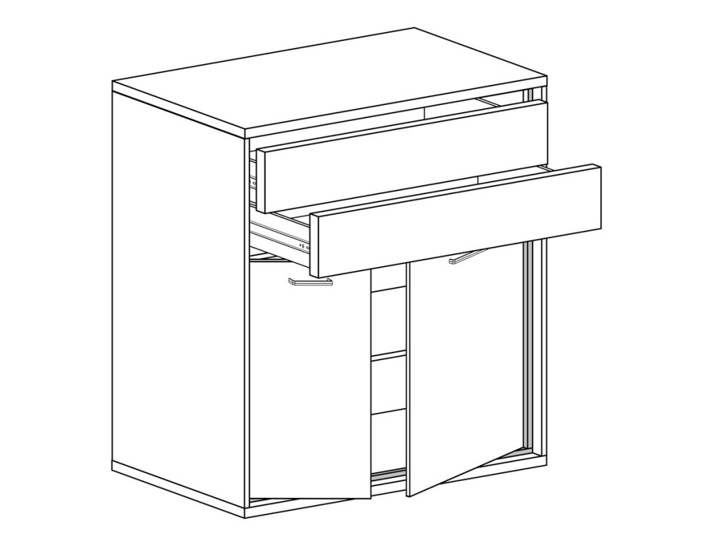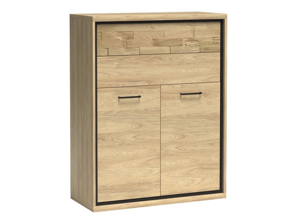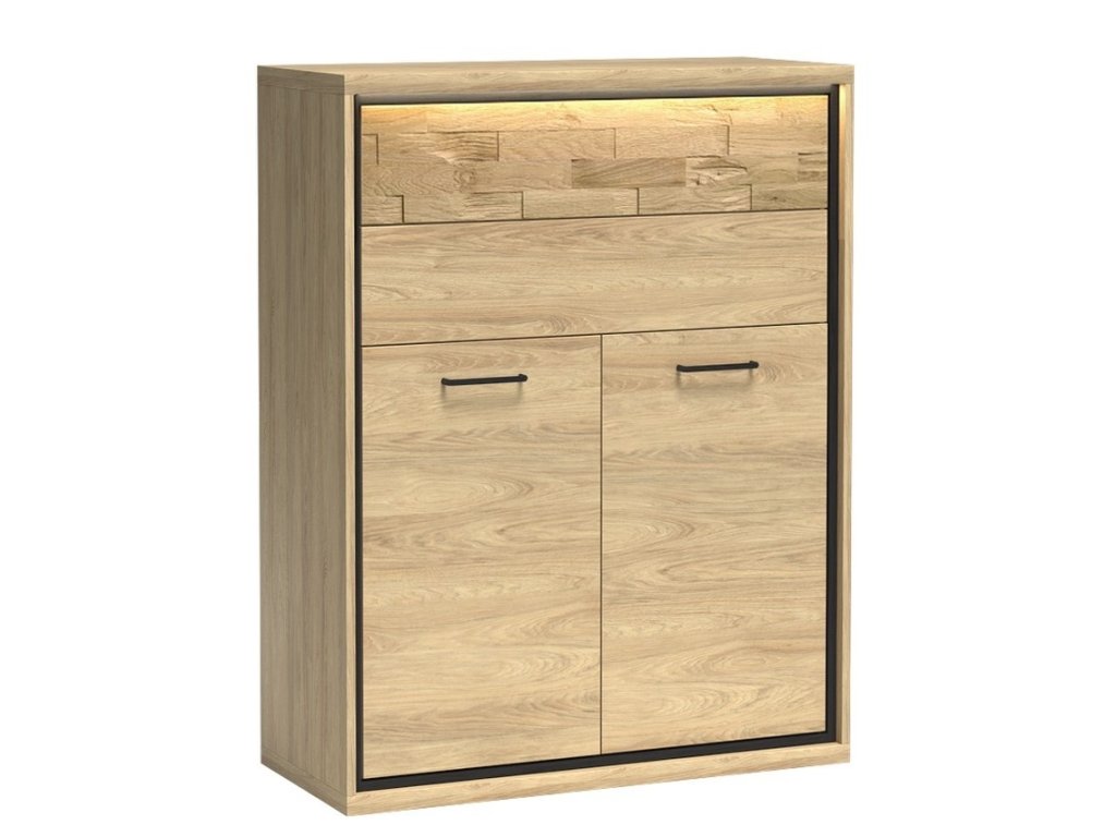 Komoda dvoudveřová se zásuvkami v industriálním stylu v barevném provedení dub hickory, doplněno prvky v černé barvě. Nábytek je vyroben z kvalitního lamina ohraničeného ABS páskou a také je vybaven systémem tichého dovírání. Zásuvky jsou doplněny dekorační dubovou deskou a systémem push to open - otvírání zmáčknutím zásuvky. Úchyty jsou černé kovové. Dále je možné dokoupit LED dekorační pásek. Kolekce se skládá z mnoha prvků a tento široký výběr Vám zaručí sestavit si nábytek podle svých vlastních představ a přání. Dodáváme v demontovaném stavu.Doplňkové parametry