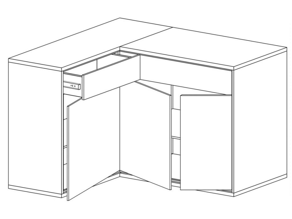 Komoda rohová třídveřová se zásuvkami v industriálním stylu v barevném provedení dub hickory, doplněno prvky v černé barvě. Nábytek je vyroben z kvalitního lamina ohraničeného ABS páskou a také je vybaven systémem tichého dovírání. Zásuvky jsou doplněny dekorační dubovou deskou a systémem push to open - otvírání zmáčknutím zásuvky. Úchyty jsou černé kovové. Dále je možné dokoupit LED dekorační pásek. Kolekce se skládá z mnoha prvků a tento široký výběr Vám zaručí sestavit si nábytek podle svých vlastních představ a přání. Dodáváme v demontovaném stavu.Doplňkové parametry