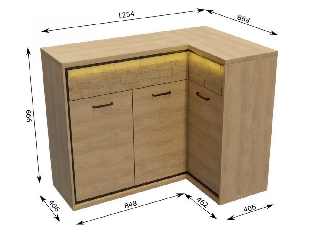Komoda rohová PILETAS M-15 dub hickory levá