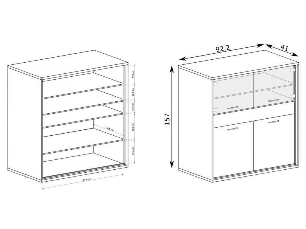 Vitrína nízká 4D1S PILETAS M-5 dub hickory