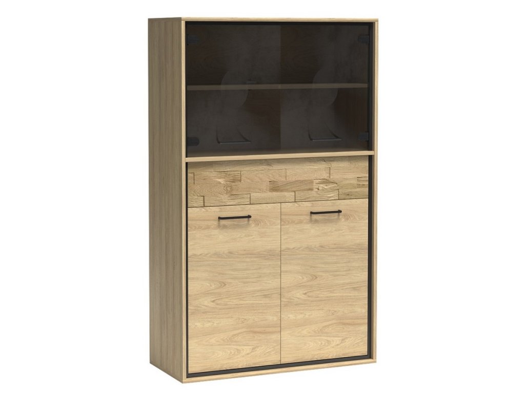 Vitrína čtyřdveřová se zásuvkou v industriálním stylu v barevném provedení dub hickory, doplněno prvky v černé barvě. Nábytek je vyroben z kvalitního lamina ohraničeného ABS páskou a také je vybaven systémem tichého dovírání. Zásuvka je doplněna dekorační dubovou deskou a systémem push to open - otvírání zmáčknutím zásuvky. Úchyty jsou černé kovové. Dále je možné dokoupit LED osvětlení vitríny a také LED dekorační pásek. Kolekce se skládá z mnoha prvků a tento široký výběr Vám zaručí sestavit si nábytek podle svých vlastních představ a přání. Dodáváme v demontovaném stavu.Doplňkové parametry