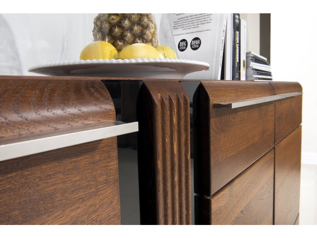 Postel 160 x 200 ze sektorové řady PORTI. Systém je exkluzivní kolekce navržena v moderním duchu. Struktura ušlechtilého masivního dubu na přední straně a přírodní dýha na korpusu zdůrazňuje velmi klasickou barvu antický dub. Opakující se prvek riflování v kombinaci s černým sklem je dekorační motiv, který se odráží v každém bloku. Celá řada se vyznačuje elegancí a jednoduchými tvary, které zaručují plné využití prostoru. Barevné provedení - antický dub. Čelo je potaženo kvalitní látkou imitující kůži se snadnou údržbou čistění - barva černá Carabu 33. K posteli je nutné zvlášť dokoupit rošt a matraci. Možnost dokoupit zvedací rošt s praktickým úložným prostorem. Dodáváme v demontovaném stavu.Doplňkové parametry