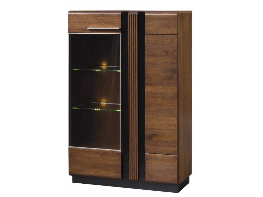 Nízká vitrína ze sektorové řady PORTI značkového výrobce Szynaka. Vitrína má 2 dvířka. Systém PORTI je exkluzivní kolekce navržena v moderním duchu. Struktura ušlechtilého masivního dubu na přední straně a přírodní dýha na korpusu zdůrazňuje velmi klasickou barvu antický dub. Opakující se prvek riflování v kombinaci s černým sklem je dekorační motiv, který se odráží v každém bloku. LED osvětlení vitrín lze dokoupit. Použitelnost alternativního spínače zjednoduší každodenní používání a osvětlený vnitřek vybraných bloků přinese ještě více energie a radosti v každodenním životě a nenápadně upozorní na povahu exponovaných prvků. Celá řada se vyznačuje elegancí a jednoduchými tvary, které zaručují plné využití prostoru. Barevné provedení - antický dub. Elegantní úchyty jsou z kovu. Dodáváme ve smontovaném stavu.Doplňkové parametry