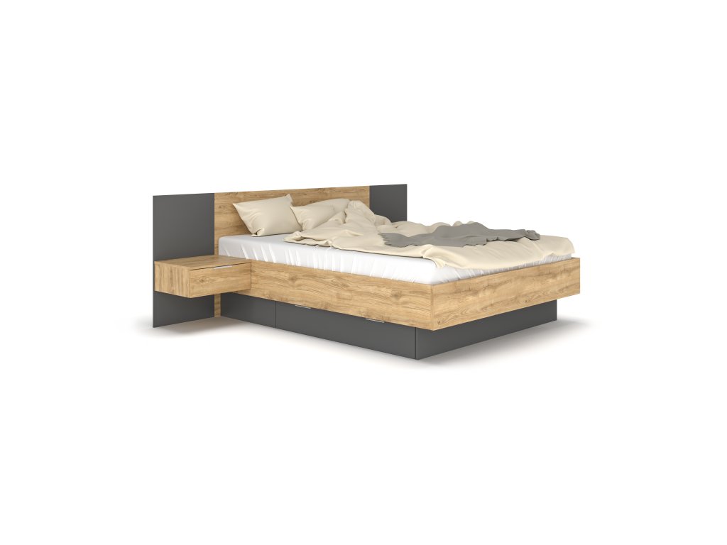 Sestava do ložnice v elegantním provedení dokonale doplní váš interiér. Je vyrobena z kvalitní LTD desky v barvě dub minerva/šedá. Sestava se skládá z těchto položek (Š x V x H cm): - komoda (109 x 81 x 47 cm) - šatní skříň (178 x 217 x 62 cm) - zrcadlo (105 x 74 cm) - postel s nočními stolky (262 x 89 x 204 cm) Pod postelí jsou dvě zásuvky, které mohou sloužit jak úložný prostor. V ceně není zahrnut rošt ani matrace postele, je možno je dokoupit. Vhodný rozměr 160 x 200 cm nebo 2 ks 80 x 200 cm. Nabídka komponentů této sektorové řady umožňuje sestavit si nábytek do ložnice dle vlastních představ. Dodáváme v demontovaném stavu.Doplňkové parametry