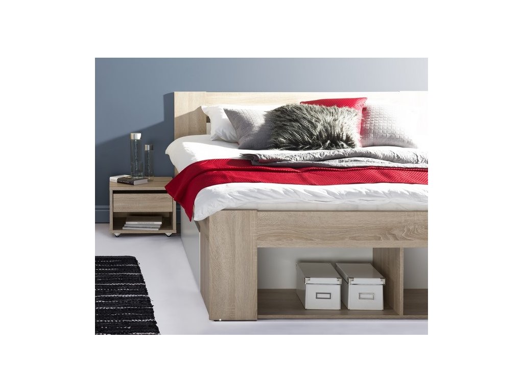 Ložnice MILO v moderním provedení. Korpus i dvířka jsou z kvalitního LTD, barevné provedení - dub sonoma s bílou. Sestava se skládá z postele ( 146 x 205 x 86 cm ) a šatní skříně 4-dvéřové ( 187 x 58 x 206 cm ). Postel obsahuje na každé straně zásuvku pod postel a noční stolek, který lze zasunout pod postel. V nohách postele je regál. Postel neobsahuje rošt ani matraci, to je třeba doobjednat, vhodný rozměr 140 x 200 cm. Jednotlivé díly lze koupit zvlášť. Dodáváme v demontovaném stavu.Doplňkové parametry