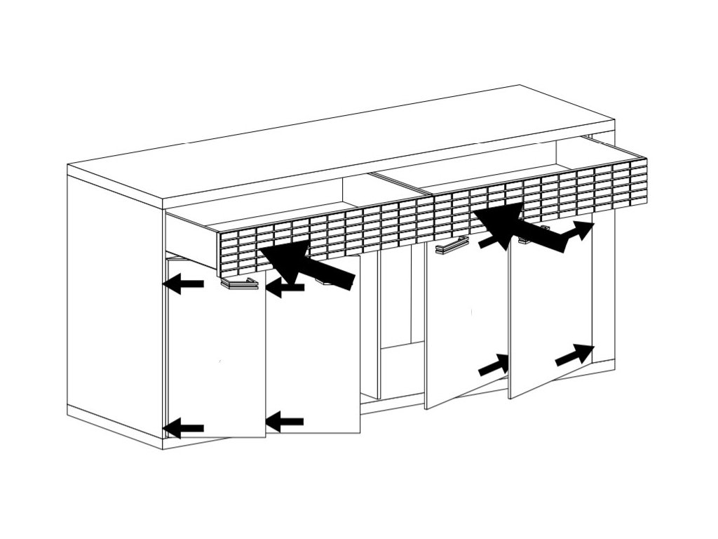 Komoda má 4 dveře a 2 zásuvky. Jedná se o stylovou kolekci nábytku moderního stylu, který je vhodný do obývacího pokoje a ložnice. Barevné provedení dub ribbeck. Vsazením ozdobné kostičkované lišty je zvýrazněn rustikální vzhled masivního dřeva. Nábytek je vyroben z kvalitního lamina 16 mm, některé desky jsou zesíleny na 48 mm, vše ohraničené ABS páskou. Dvířka mají systém tichého zavírání. Zásuvky jsou opatřeny systémem PUSH TO OPEN ( zatlač a otevři ). Možnost dokoupit LED osvětlení. Dodáváme v demontovaném stavu.Doplňkové parametry
