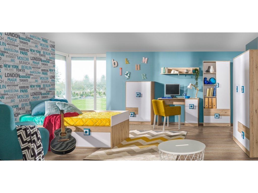 Barva: | dub jasný/bílá/tyrkys |