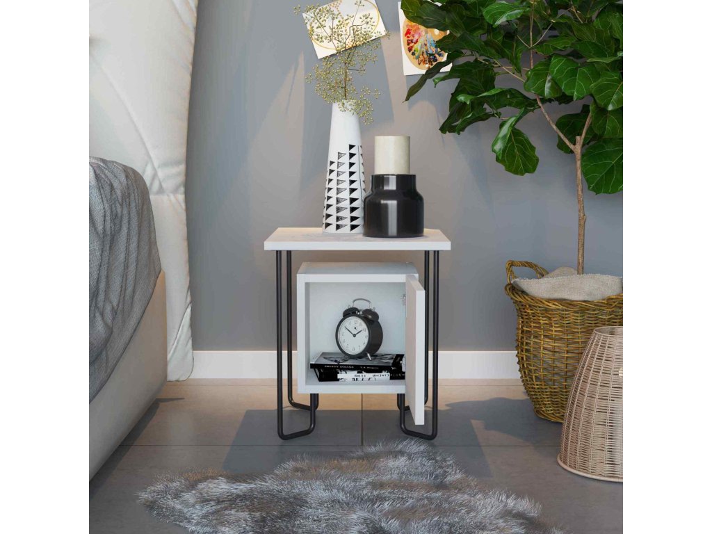 Noční stolek představuje dokonalou kombinaci loftového a industriálního stylu, který se skvěle hodí do moderních ložnic. S jeho bílým provedením a lesklými kovovými doplňky je tento stolek ideálním řešením pro ty, kdo hledají praktičnost spojenou s jedinečným designem.