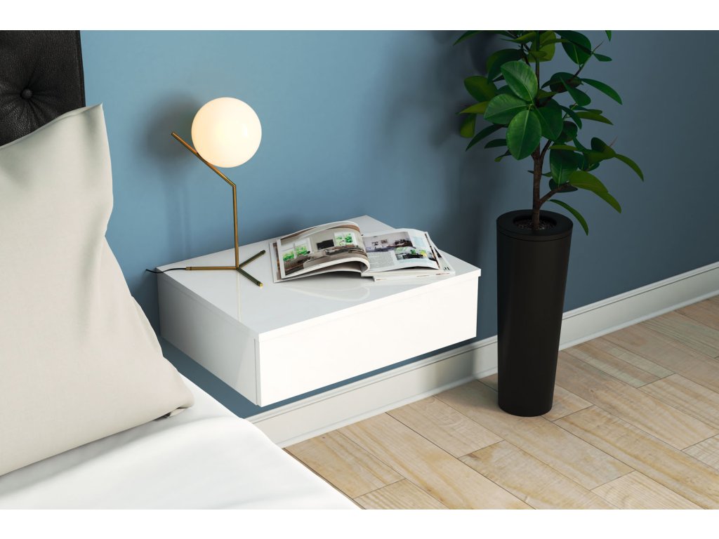 noční stolek je vyroben v minimalistickém designu a představuje praktické řešení odkládacího prostoru pro malé ložnice. noční stolek s čistými liniemi dodá vaší ložnici funkčnost a vzdušný vzhled. Jednoduše jej připevněte na stěnu vedle postele do vámi preferované výšky a nechte, aby se postaral o nezbytnosti, které chcete mít během večera či časného rána u sebe. Stolek obsahuje zásuvku s bezúchytovým otevíráním pro snadný přístup k uloženým předmětům.