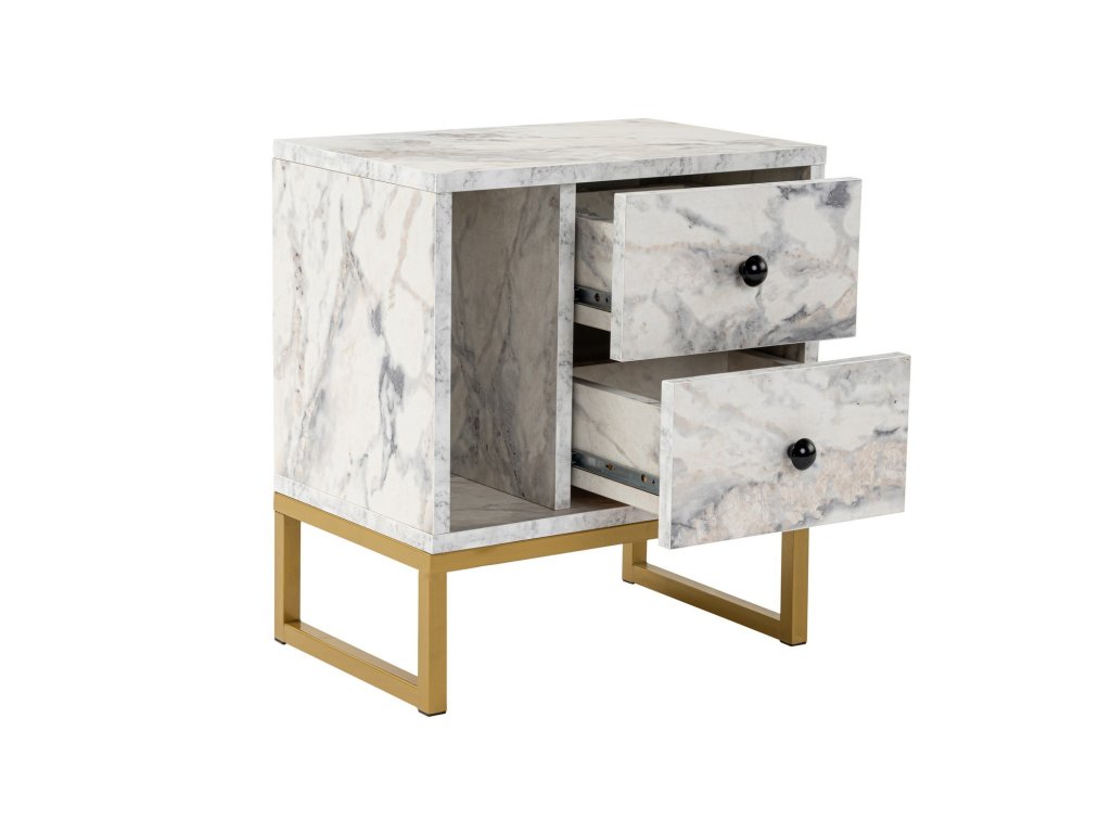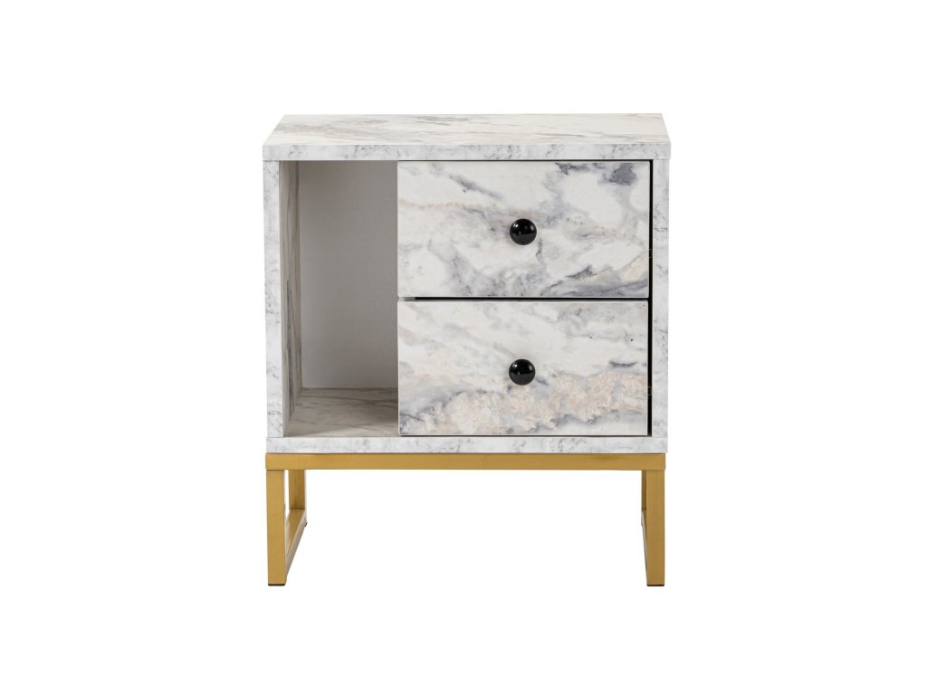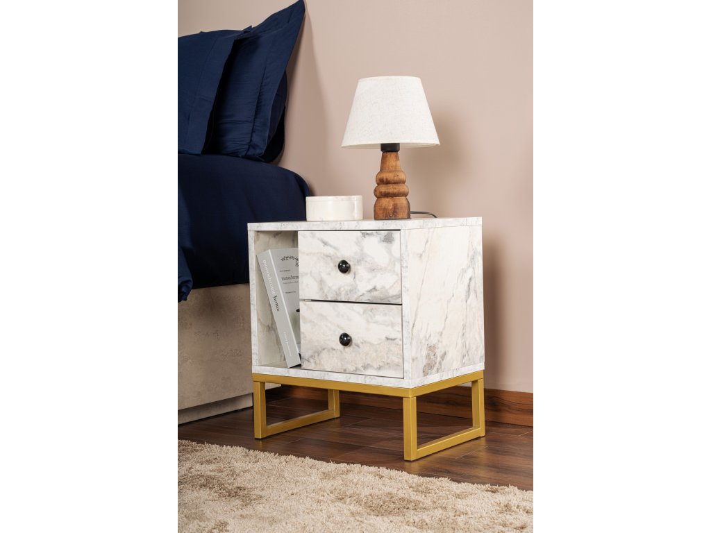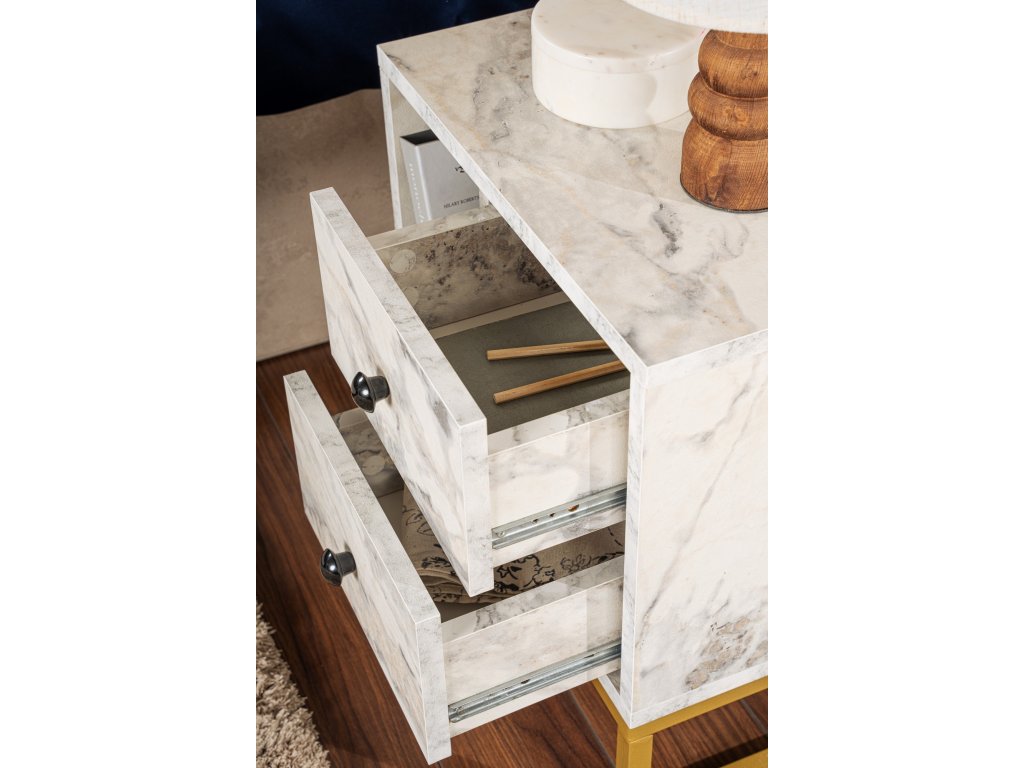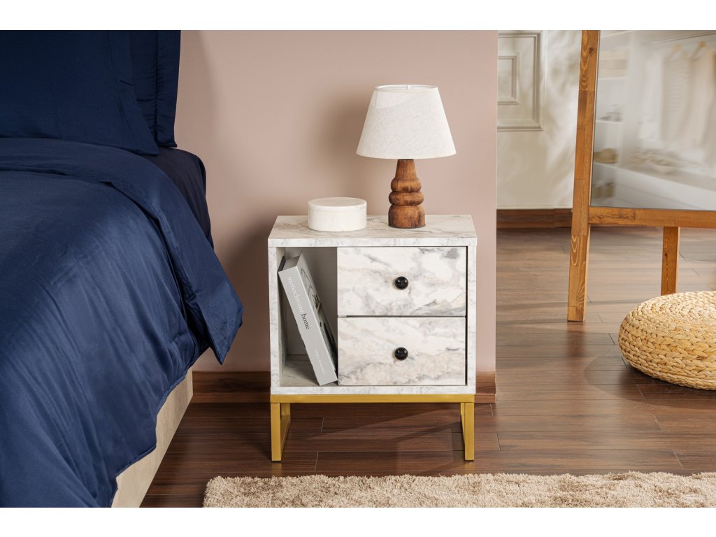 Nenechte si ujít příležitost dodat své ložnici nádech luxusu s naším nádherným nočním stolkem v barvě mramoru a zlata v frézii. Objednejte si ho ještě dnes a zažijte krásu a funkčnost, kterou do vašeho prostoru vnese.