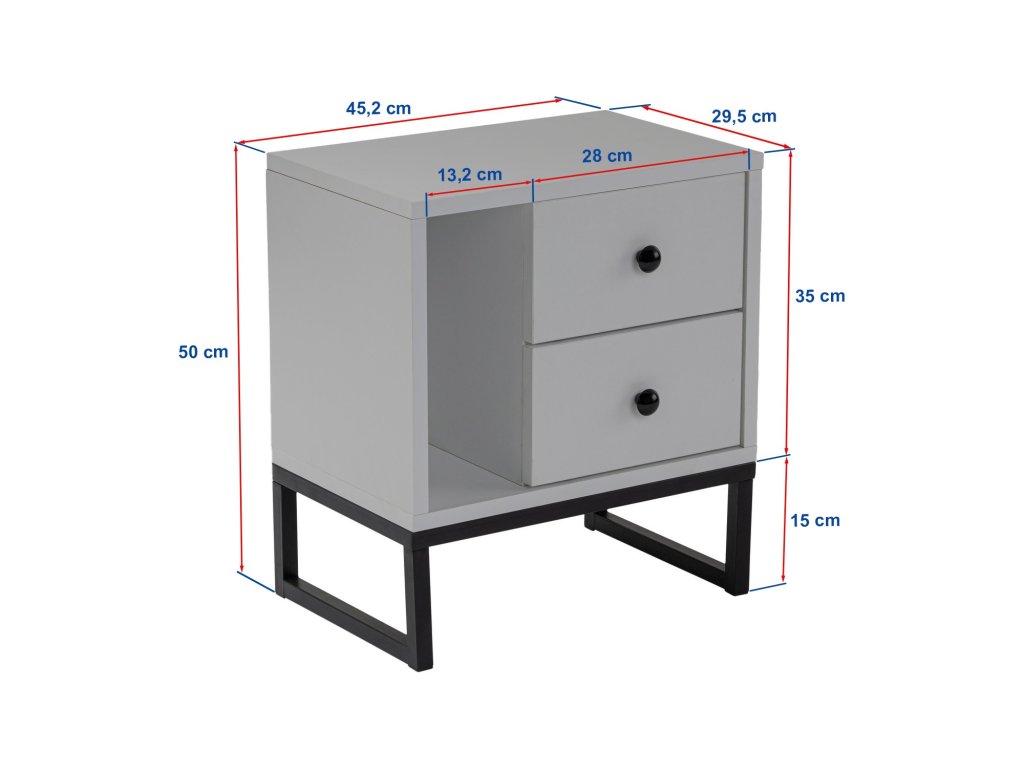 Tento noční stolek je nejen krásným doplňkem vaší ložnice, ale také nabízí praktická úložná řešení. 18mm silná dřevotřísková deska se 100% melaminovým povlakem zajišťuje odolnost a dlouhou životnost, zatímco prostorné rozměry poskytují dostatek prostoru pro vaše noční nezbytnosti.