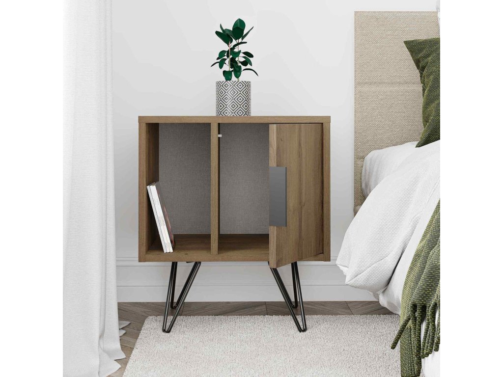 Noční stolek: Industriální elegance v odstínu ořech Hit