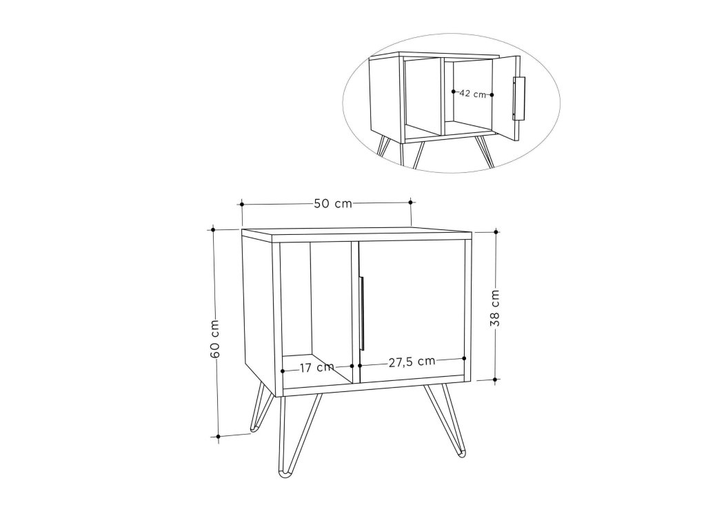 Díky skříňce s jedním dvířkem získáte dostatek úložného prostoru. Regálek je pak ideální pro uskladnění vašich oblíbených knih či drobných dekorací. Detaily z lesklého kovu dodávají stolečku výjimečný luxusní vzhled.
