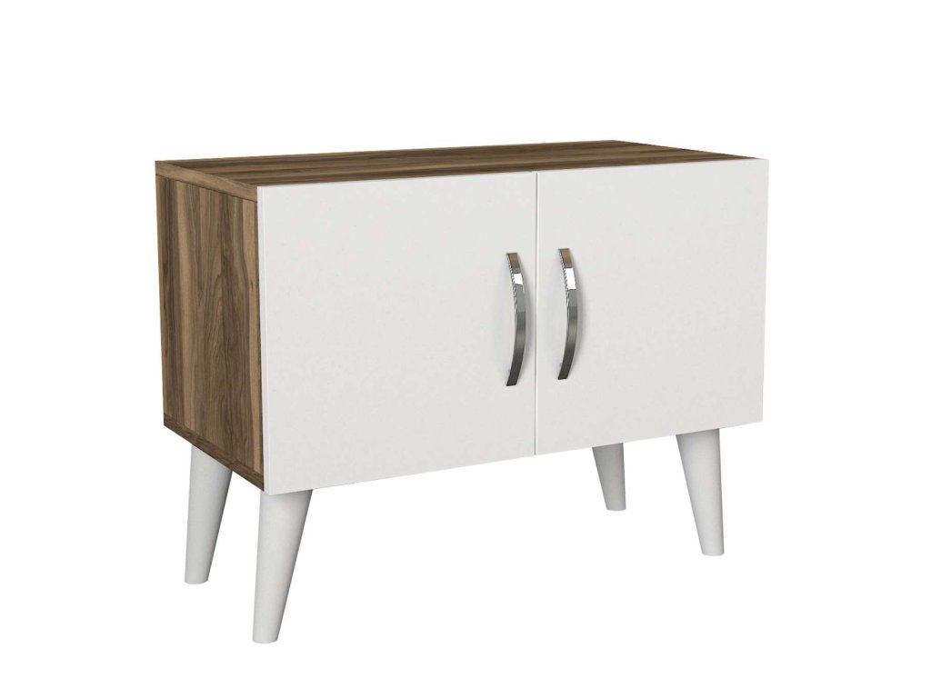 Noční stolek je vyroben z kvalitního LTD materiálu o tloušťce 18 mm, což zajišťuje jeho dlouhou životnost a odolnost. Elegantní kombinace bílé barvy a ořechu přinese do vašeho interiéru moderní a stylový vzhled. S rozměry 70.3 x 55 x 37.1 cm poskytuje dostatek úložného prostoru díky dvěma praktickým dvířkům.