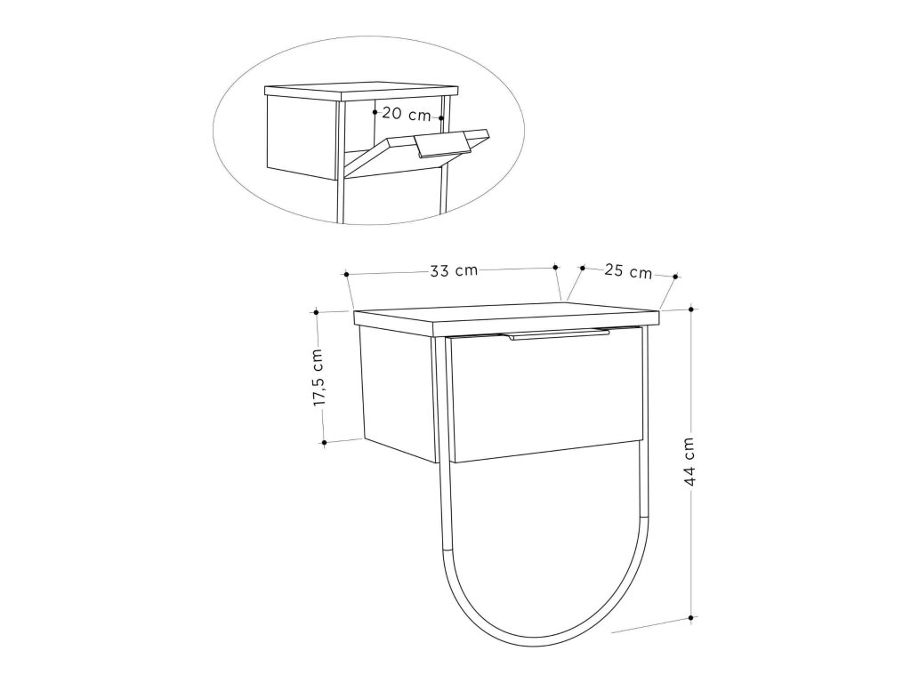 Výklopné přihrádky umožňují snadné uskladnění všech vašich potřeb a přitom udržují váš prostor uklizený a organizovaný. Kombinace melaminu, VT laminátu a kovu zajišťuje, že tento noční stolek je nejen stylový, ale také robustní a dlouhověký.