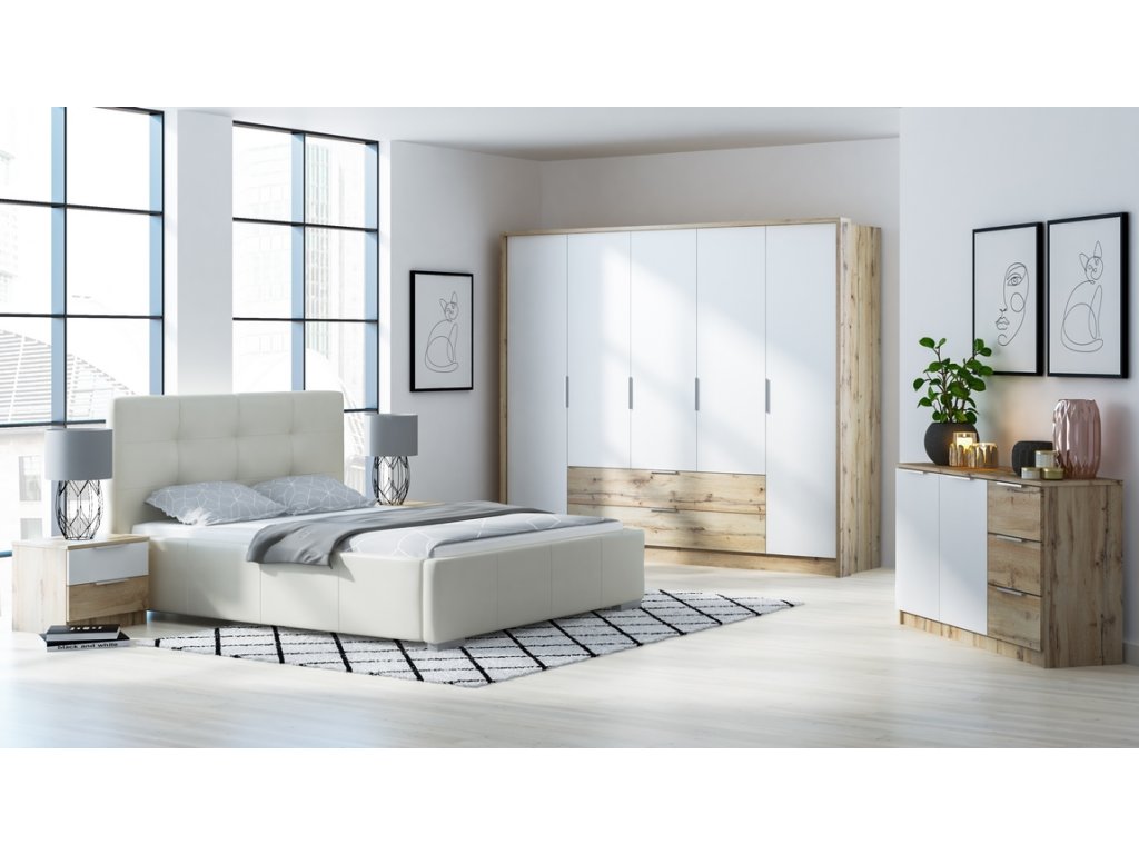 Noční stolek se dvěmi zásuvkami v moderním provedení. Korpus je z kvalitní LTD desky v barvě dub wotan, čela zásuvek jsou v kombinaci barev dub wotan/bílá. Dodáváme v demontovaném stavu.Doplňkové parametry
