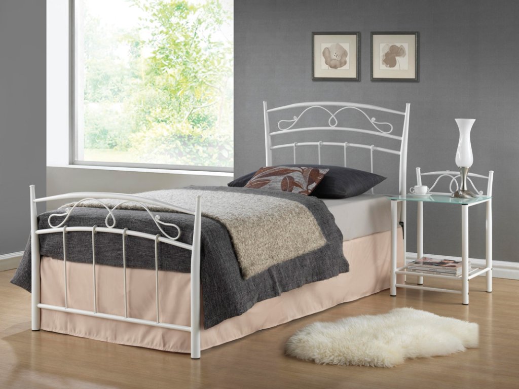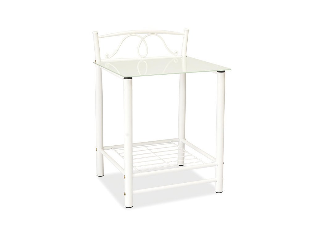 Stylový noční stolek v jednoduchém, elegantním provedení. Konstrukce je z bílého kovu, vrchní deska je z tvrzeného mléčného skla. Obsahuje praktickou odkládací poličku. Tento stolek doporučujeme například k posteli SEINA, kterou naleznete v naší uvedené nabídce.Doplňkové parametry