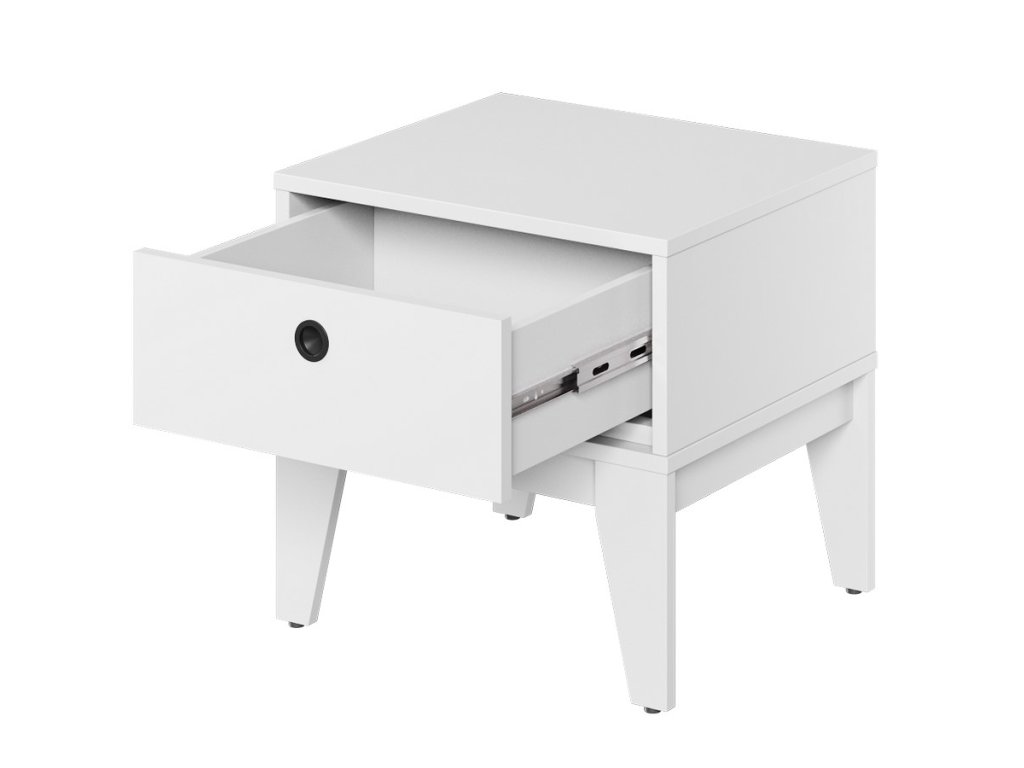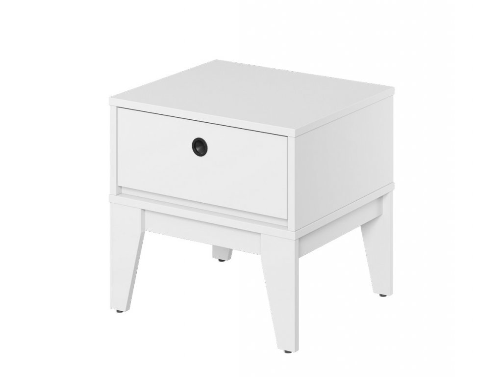 Noční stolek se zásuvkou v moderním provedení. Nábytek je vyroben z desky LTD hraněné páskou ABS v barvě bílá mat. Dodáváme v demontovaném stavu.Doplňkové parametry