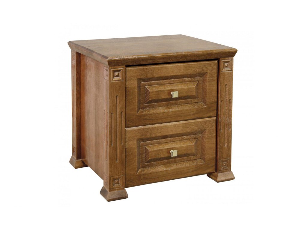 Noční stolek se dvěma zásuvkami je vyroben z masivního dubového dřeva s vyřezávaným dekorem v barevném provedení ořech. Úchyty jsou kovové. V naší nabídce najdete další komponenty této kolekce, které si můžete dokoupit. Dodáváme v demontovaném stavu.Doplňkové parametry