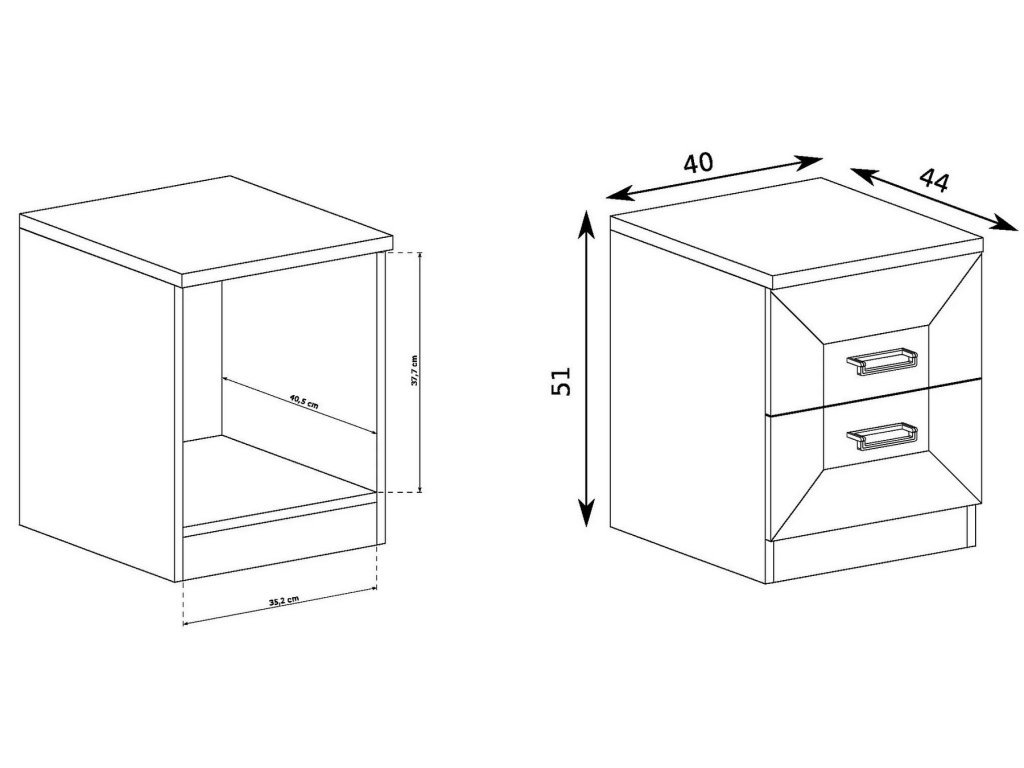 Noční stolek ze sektorové řady. Stolek má 2 praktické zásuvky. Systém je exkluzivní kolekce navržena v duchu vintage. Celá řada se vyznačuje elegancí a jednoduchými tvary, které zaručují plné využití prostoru. Nábytek je vyroben z velmi kvalitní LTD o tloušťce 16 mm, horní deska zesílena na 32 mm, lišty na čele nábytku jsou MDF, hrany ABS. Tvrzené sklo ve vitrínách je jemně zdobené. Elegantní úchyty jsou z kovu. Barevné provedení dub stoletý. Dodáváme v demontovaném stavu.Doplňkové parametry