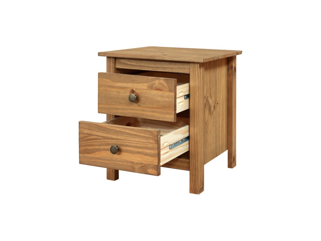 materiál masiv borovice voskovaná v medovém odstínu kovové úchytky v barevném provedení černěná mosaz 2 zásuvky s kovovými pojezdyDoplňkové parametry
