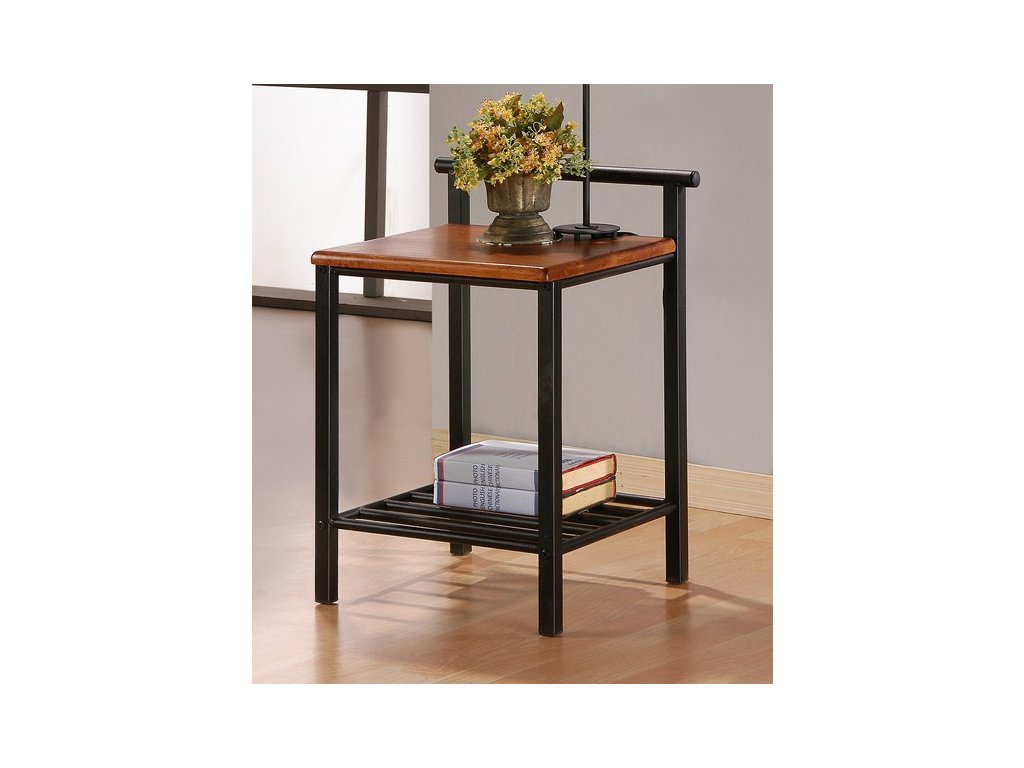 Elegantní noční stolek v klasickém stylu působící zároveň moderním dojmem. Konstrukce je z kovu černé barvy a kvalitního malajského dřeva v barvě antická třešeň. Obsahuje praktickou odkládací poličku.Doplňkové parametry