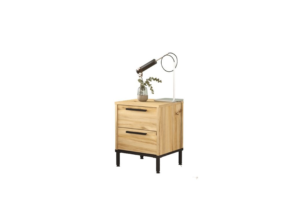 Design a Kvalita: Představujeme Vám elegantní noční stolek, který je dokonalým doplňkem pro každou ložnici. Vyrobený z kvalitního LTD v odstínu dub Left a dokončený černým kovem, tento stolek je nejen krásný, ale také odolný a dlouhotrvající.
