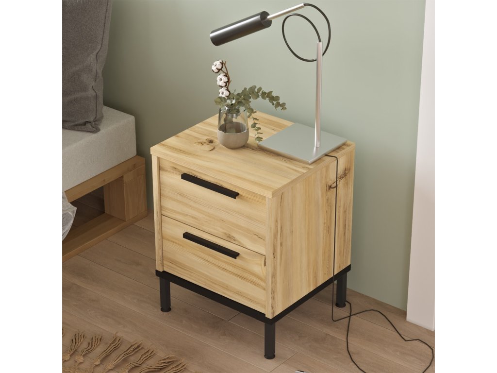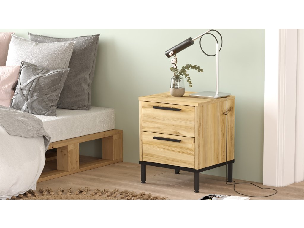 Rozměry a Funkce: Se svými kompaktními rozměry 40 x 35 x 49 cm, je ideální do jakéhokoli prostoru. Vybaven dvěma zásuvkami, nabízí dostatek úložného prostoru pro vaše knihy, ovladače a jiné noční potřeby.