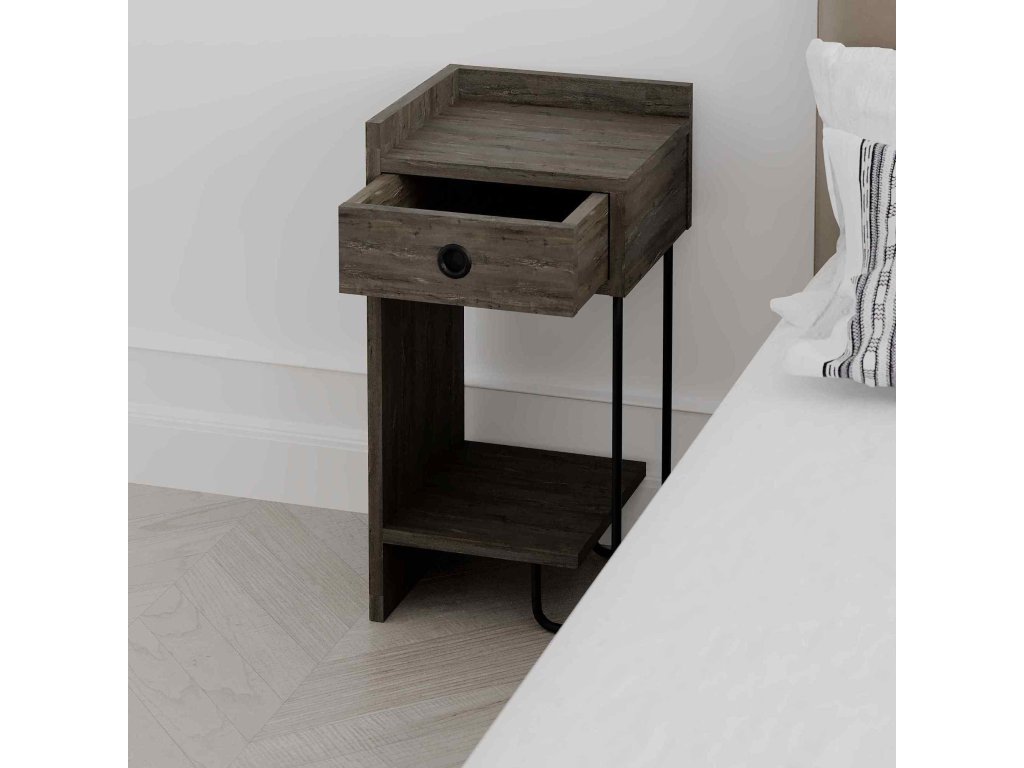 Zažijte kombinaci loftového stylu a elegantní barvy tmavé kávy s nočním stolkem , ideálním doplňkem pro vaši moderní ložnici.
