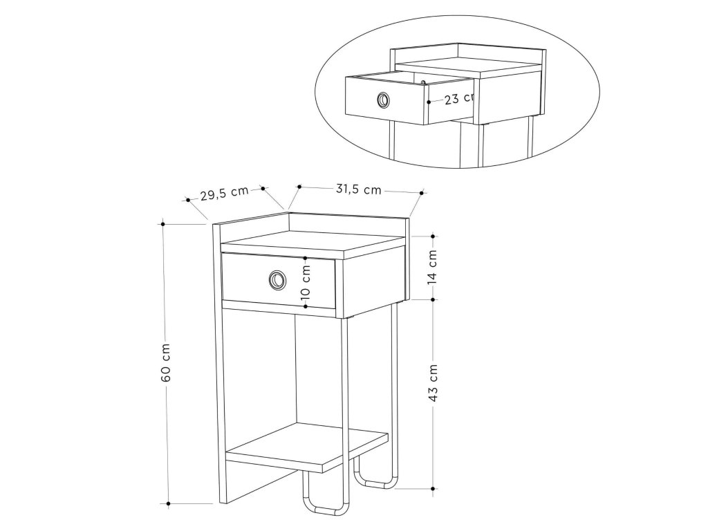 Rozměry: 61 x 32 x 30 cm - ideální velikost pro všechny vaše noční potřeby.