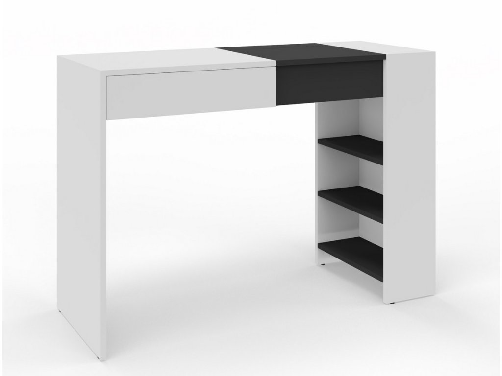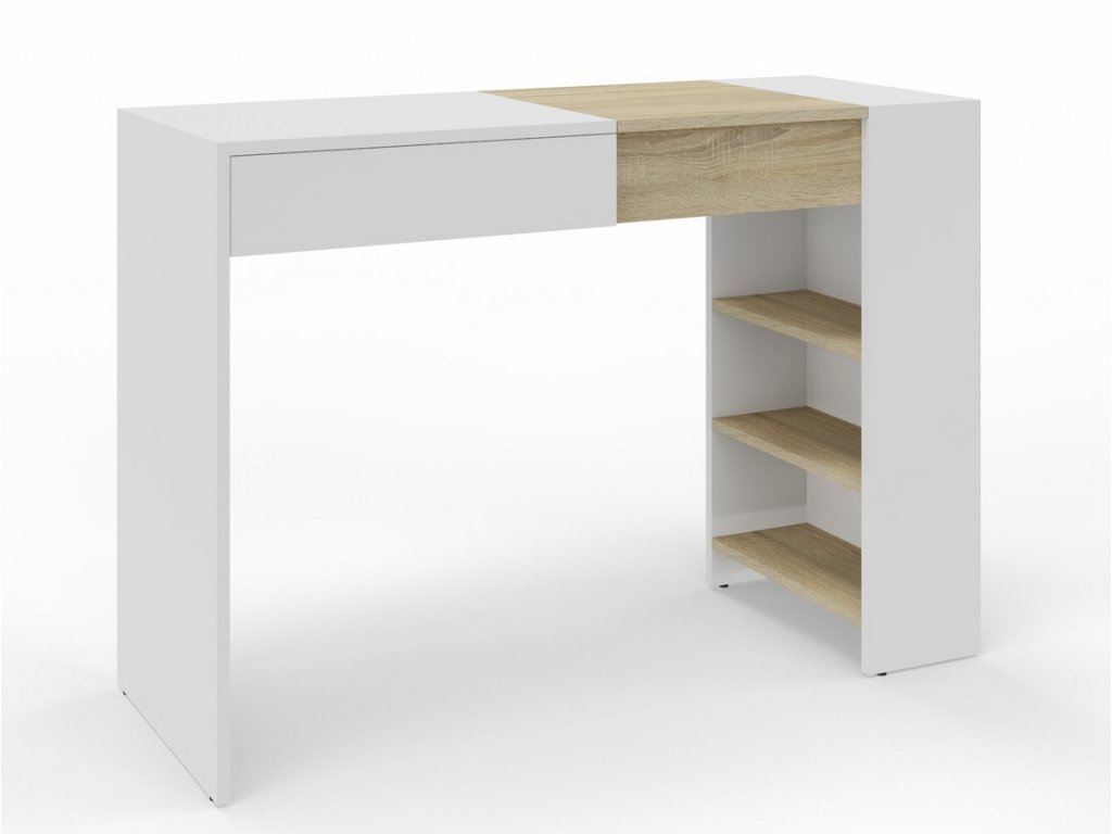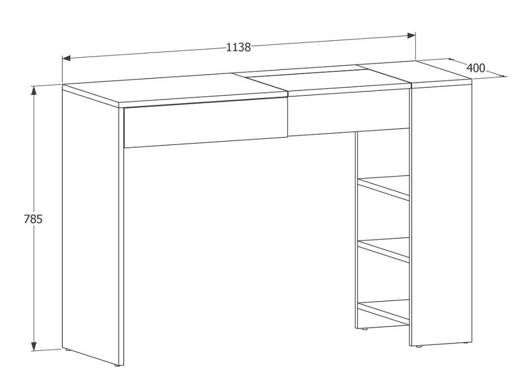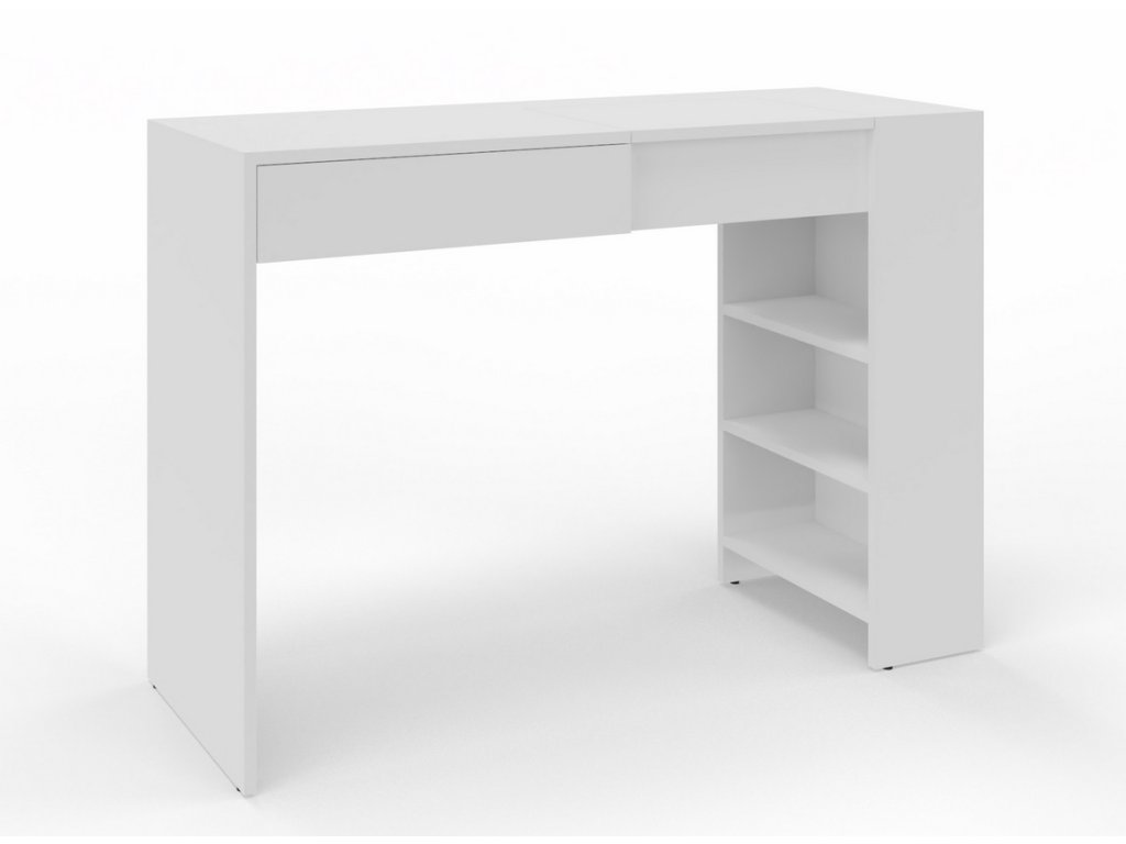 Toaletní stolek má klasický šuplík a druhý úložný prostor, kde je po otevření na vnitřní straně zrcadlo. Dalším bonusem jsou pak poličky v boční desce stolu. Tento stolek může sloužit také jako pracovní stůl. Stůl je vyroben z laminátové desky v barevném provedení bílá. Dodáváme v demontovaném stavu.Doplňkové parametry