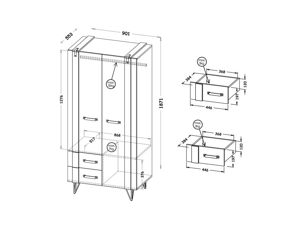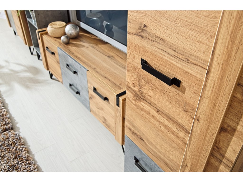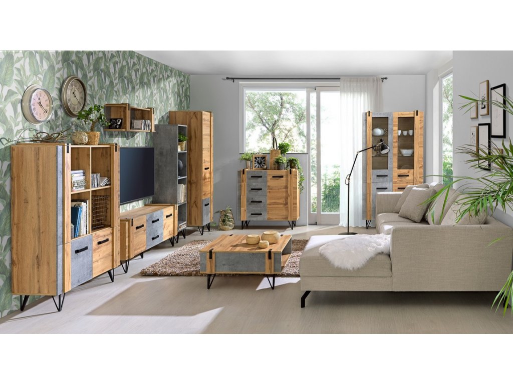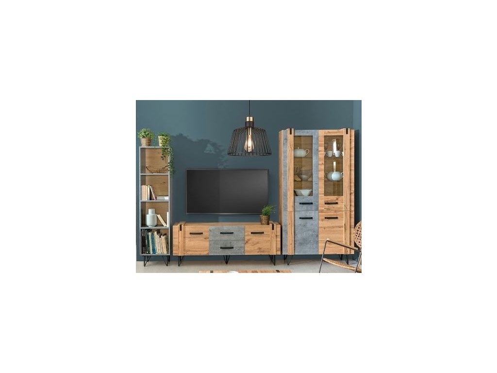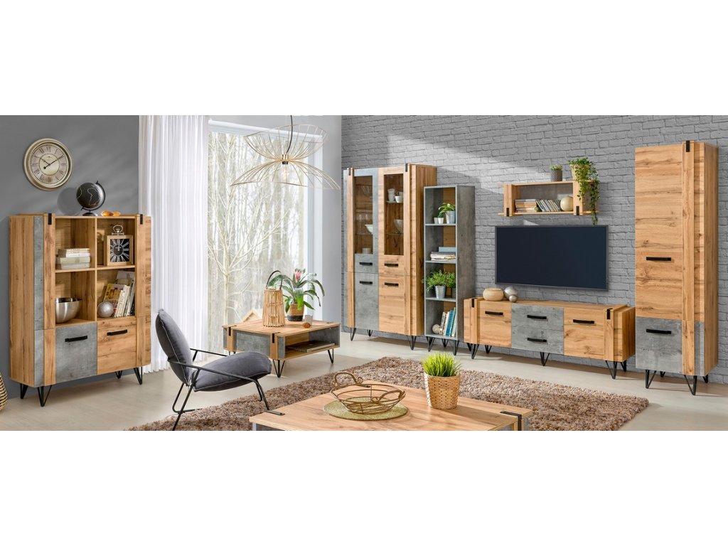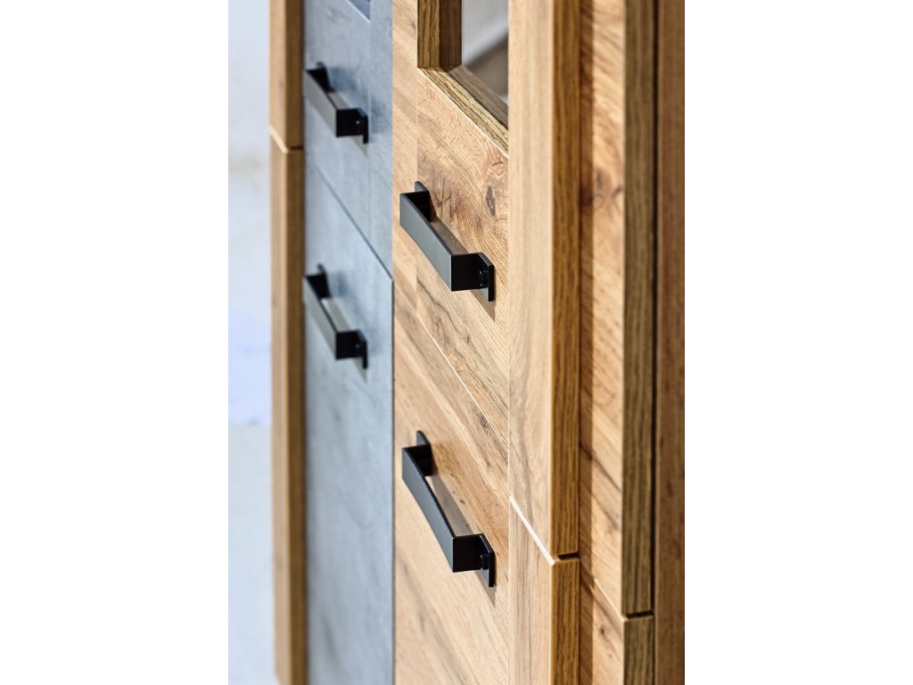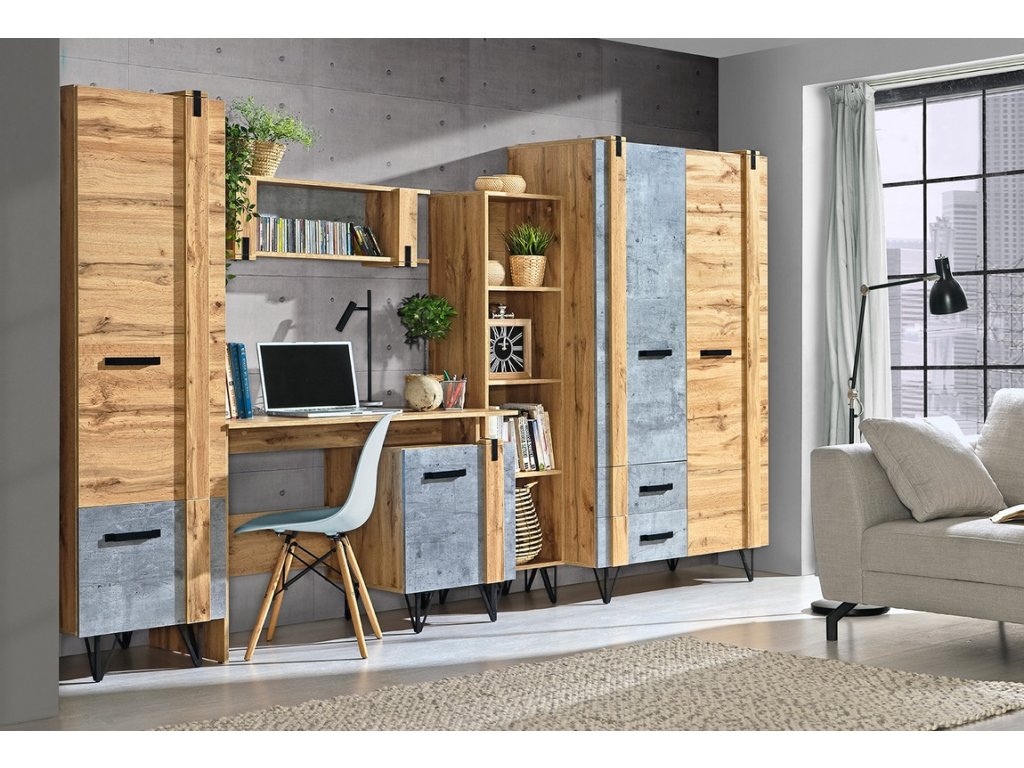 Moderní šatní skříň Lofter 1 je vyrobena v industriálním stylu v barvě dub wotan/beton .Skříň je velmi prostorná obsahuje šatní tyč a několik polic a také 2 zásuvky kterou jsou praktické. Můžete skříň umístit jak do studentského nebo dětského pokoje ,ložnice tak i do předsíně i kanceláře. Úchyty a nožky jsou kovové v černé barvě.