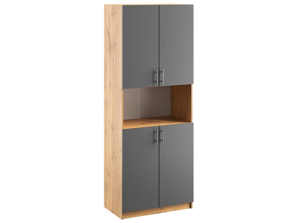 Regál čtyřdveřový je vyroben z LTD desky odolné vůči poškrábání, korpus je v barvě dub apalačský, dvířka jsou v barvě antracit. Dodáváme v demontovaném stavu.Doplňkové parametry