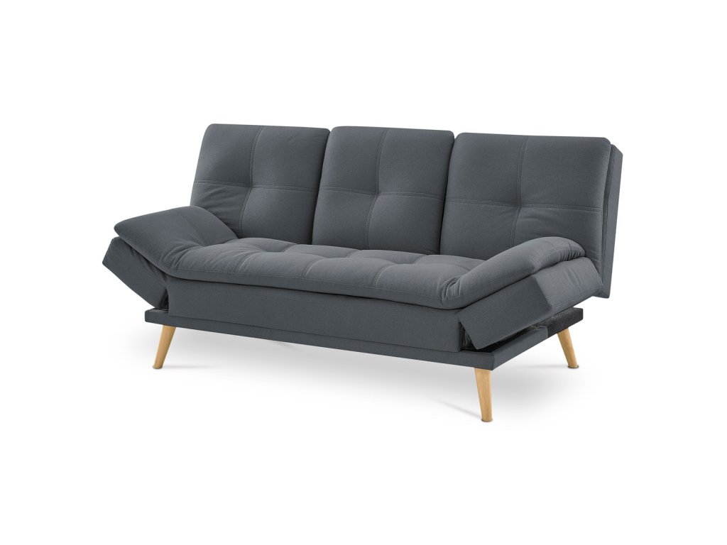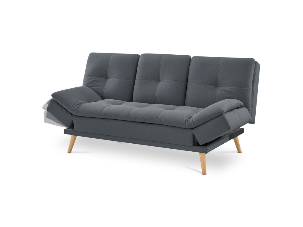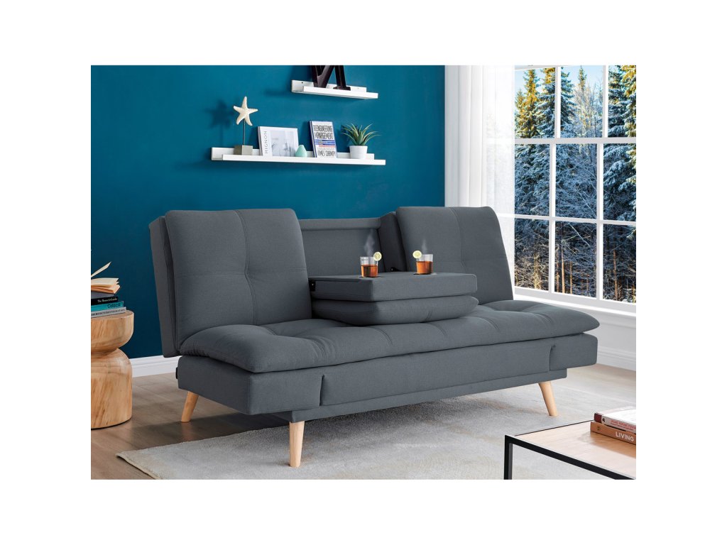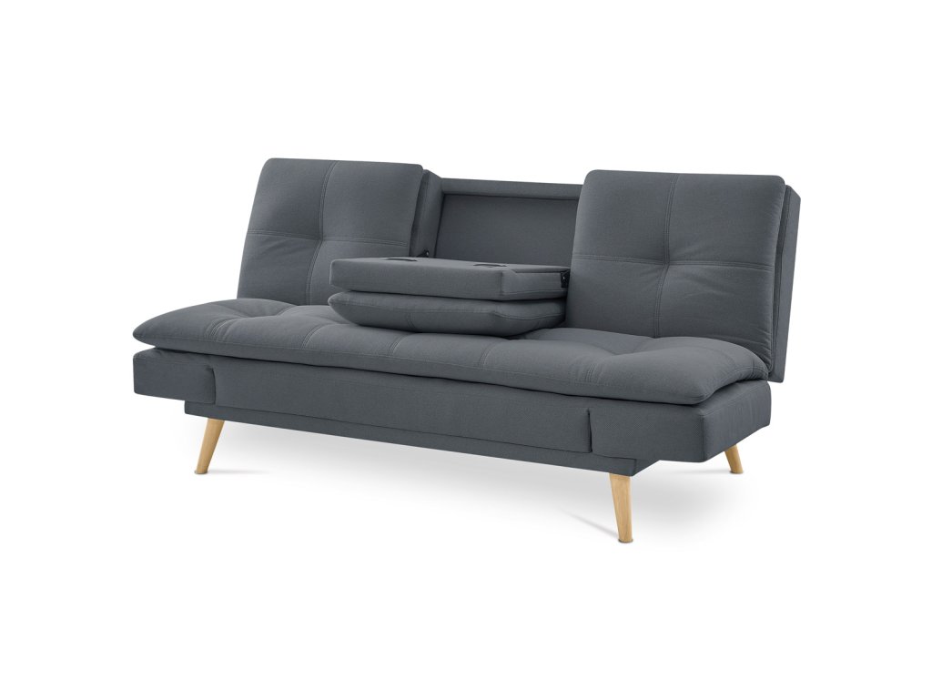 ASB-4720 Rozkládací pohovka click-clack, 3místná, držák nápojů, potah tmavě šedá látka, nohy masiv buk