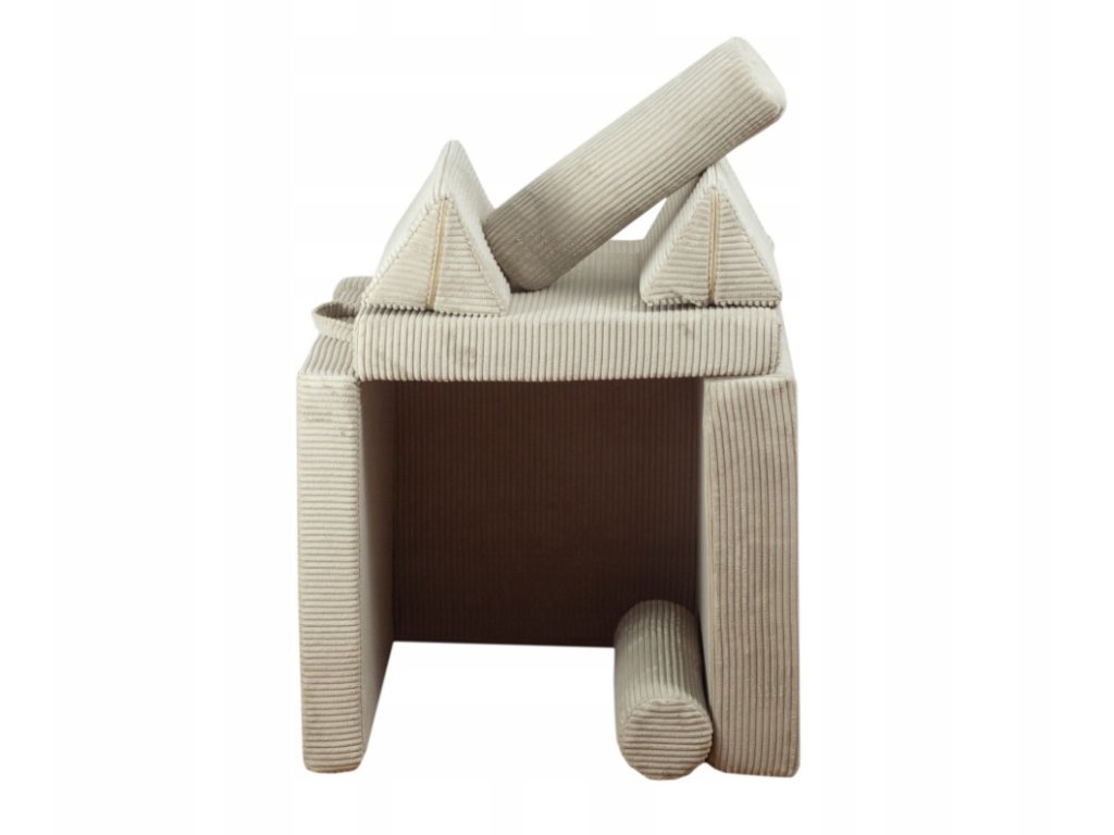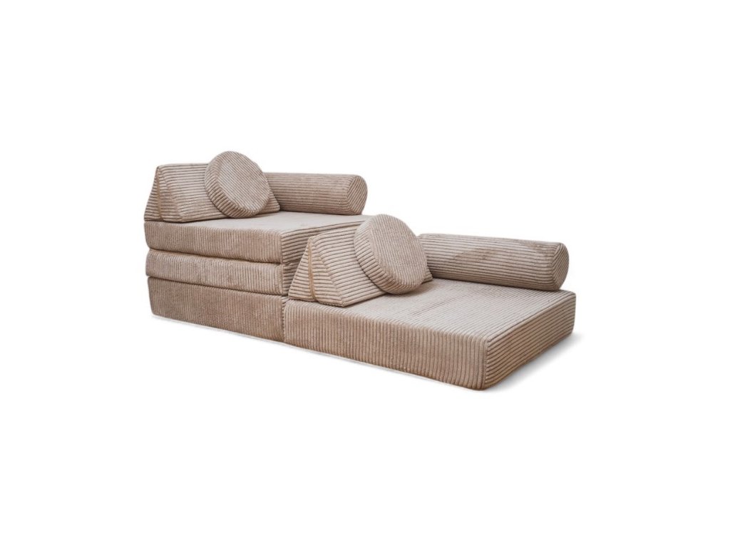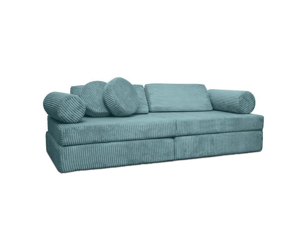 Modulární hrací všestranná dětská pohovka, která se lehce změní na hrací set. Je vyrobena z vysoce kvalitní PUR pěny, odolné proti deformaci a promáčknutí, takže se matrace neprohýbá a zůstává lehká a šikovná. Pohovka obsahuje 4 podsedáky ( každé dva sešité k sobě), dva trojúhelníky jako opěradla, dvě područky, dva kulaté polštářky. Vyrobeno z bezpečného materiálu pro pokožku našich dětí, certifikované OEKO-TEX. Pohovka je čalouněná v látce Poso.