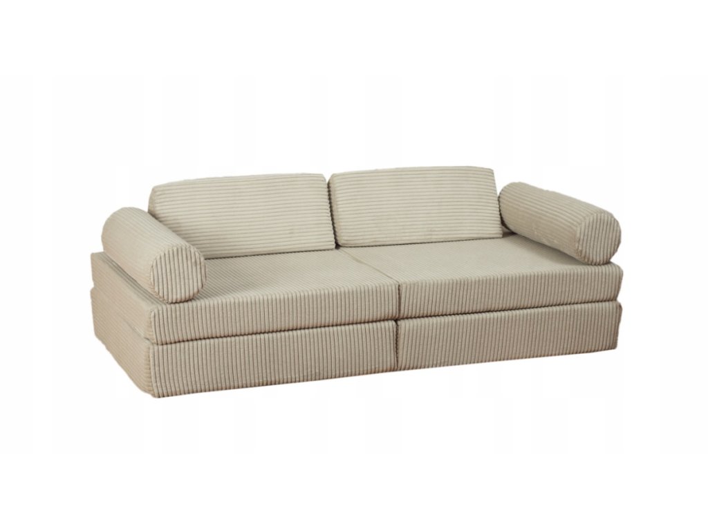 Modulární hrací všestranná dětská pohovka, která se lehce změní na hrací set. Je vyrobena z vysoce kvalitní PUR pěny, odolné proti deformaci a promáčknutí, takže se matrace neprohýbá a zůstává lehká a šikovná. Pohovka obsahuje 4 podsedáky ( každé dva sešité k sobě), dva trojúhelníky jako opěradla, dvě područky. Vyrobeno z bezpečného materiálu pro pokožku našich dětí, certifikované OEKO-TEX. Pohovka je čalouněná v látce Poso.