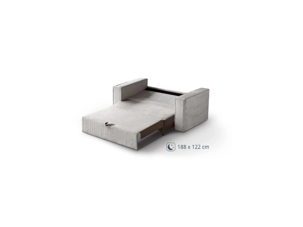Moderní dvoumístná pohovka Dave s elegantní manšestrovou látkou, ideální pro relaxaci a odpočinek v každém interiéru. Pohovka dodá interiéru útulnost a eleganci a ze sedačky udělá jedinečný dekorativní prvek. Není to jen pohovka k sezení – má také funkci na spaní s úložným prostorem, ideální pro hosty nebo pro spontánní zdřímnutí během dne. Pohovka je vyrobená v látce Poso.