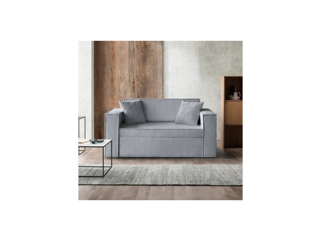 Moderní dvoumístná pohovka Dave s elegantní manšestrovou látkou, ideální pro relaxaci a odpočinek v každém interiéru. Pohovka dodá interiéru útulnost a eleganci a ze sedačky udělá jedinečný dekorativní prvek. Není to jen pohovka k sezení – má také funkci na spaní s úložným prostorem, ideální pro hosty nebo pro spontánní zdřímnutí během dne. Pohovka je vyrobená v látce Poso.