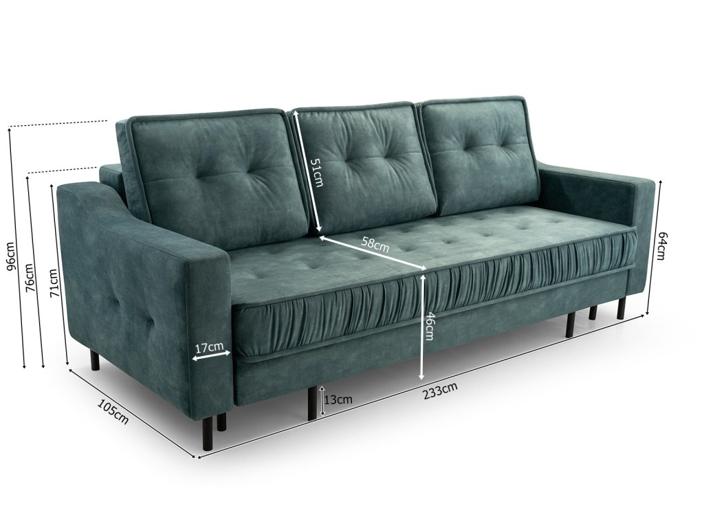 Ara je moderní pohovka se snadným rozkladem pomocí automatu a úložným prostorem. Pohodlné sezení Vám zajistí kombinace vlnitých pružin s kvalitní PUR pěnou. Jednoduchým rozkladem pomocí automatu vznikne lůžko vhodné k příležitostnému spaní. Pohovku nabízíme v kvalitní potahové látce Palladium, která snižuje absorpci tekutin, usnadňuje údržbu a minimalizuje riziko ušpinění. Rozpis rozměrů najdete na přiložené fotografii s nákresem. V ceně pohovky jsou 3 velké opěrné polštáře. Ostatní vyobrazené dekorace nejsou v ceně.