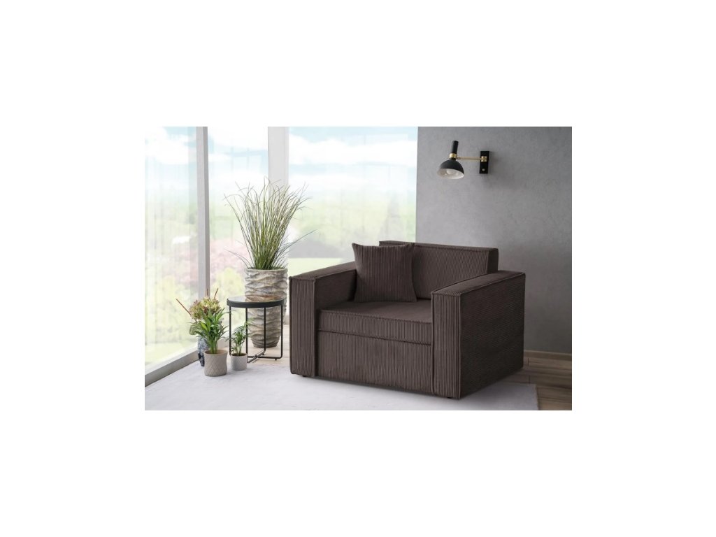 Moderní jednolůžková pohovka Dave s elegantní manšestrovou látkou, ideální pro relaxaci a odpočinek v každém interiéru. Pohovka dodá interiéru útulnost a eleganci a ze sedačky udělá jedinečný dekorativní prvek. Není to jen pohovka k sezení – má také funkci na spaní s úložným prostorem, ideální pro hosty nebo pro spontánní zdřímnutí během dne.
