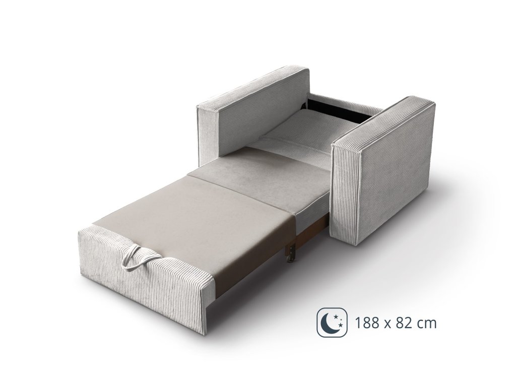 Moderní jednolůžková pohovka Dave s elegantní manšestrovou látkou, ideální pro relaxaci a odpočinek v každém interiéru. Pohovka dodá interiéru útulnost a eleganci a ze sedačky udělá jedinečný dekorativní prvek. Není to jen pohovka k sezení – má také funkci na spaní s úložným prostorem, ideální pro hosty nebo pro spontánní zdřímnutí během dne.