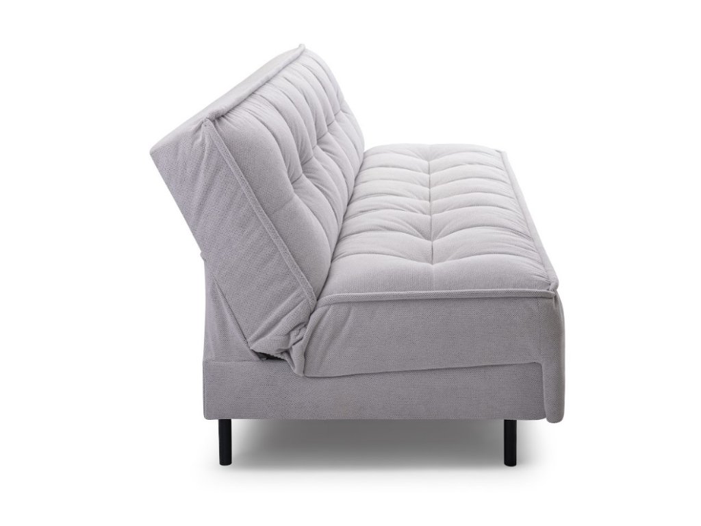 Moderní pohovka Jagna zaujme na první pohled svým elegantním vzhledem inspirovaným skandinávským stylem. Čisté linie, dekorativní prošívání na sedáku i opěradle a černé kovové nohy dodávají nábytku moderní, nadčasový charakter. Skvěle se hodí jak do obývacího pokoje, tak do menších interiérů, kde oceníte její praktické funkce – díky systému "klik-klak" ji snadno rozložíte na pohodlné lůžko. Nechybí ani úložný prostor pro ložní prádlo či deky. Pohodlí při sezení i spaní zajišťují vlnové pružiny ve spojení s kvalitní pěnou T35, která nabízí optimální oporu a komfort. Kvalitní rámová konstrukce je vyrobena z masivního dřeva, laminované dřevotřísky a dřevovláknité desky, což zaručuje vysokou odolnost a dlouhou životnost.