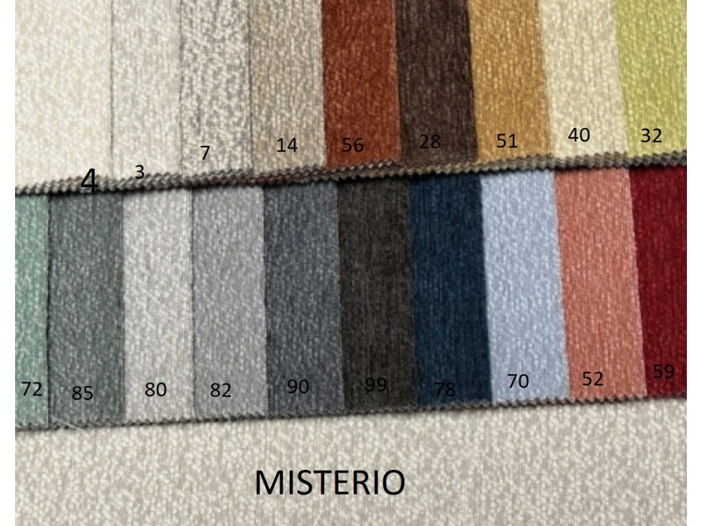Pohovka je čalouněná v látce MISTERIO - Jemná látka s výraznou moderní texturou, je měkká a pružná. K dispozici v široké škále barev v 19 atraktivních melanžových odstínech.