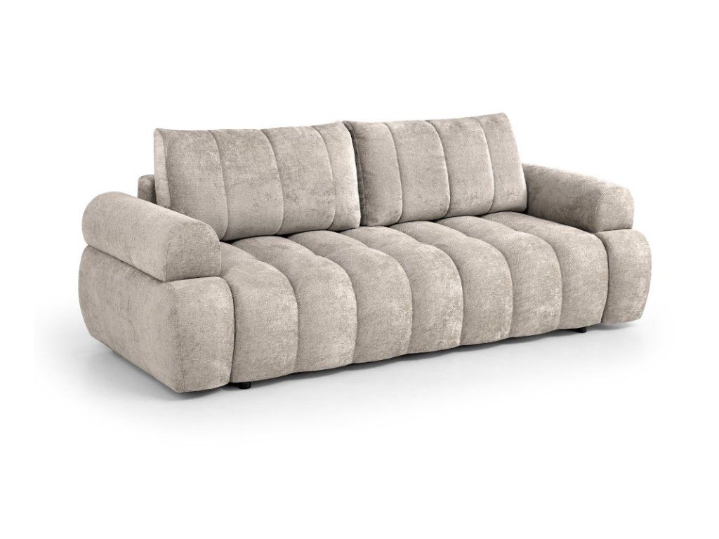 Rozkládací pohovka Mayo je ideální volbou se spojením moderního designu, pohodlí a praktičnosti. Díky elegantnímu vzhledu s ozdobným prošíváním se stane stylovým doplňkem každého interiéru, zatímco čalouněná zádová opěrka umožňuje její umístění i do prostoru.