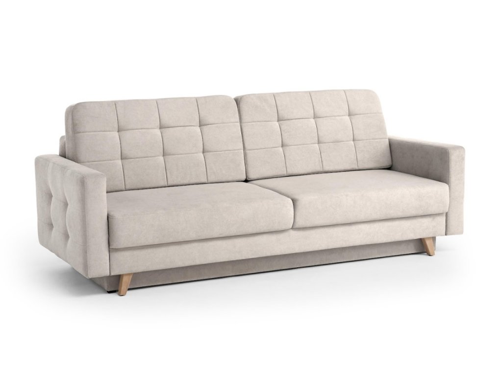 Elegantní rozkládací pohovka Vegas New, která kombinuje jednoduchost skandinávského designu. Její předností je hluboký sedák se zdobným prošíváním a pohodlné opěradlo. Sedačka je rozkládací s úložným prostorem .Pohovka je celočalouněná proto ji můžete postavit kamkoliv do prostoru. Pohovka je vyrobena v potahové látce Velo.