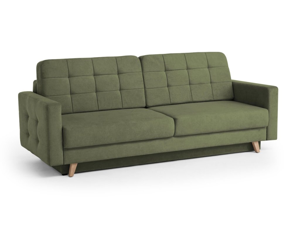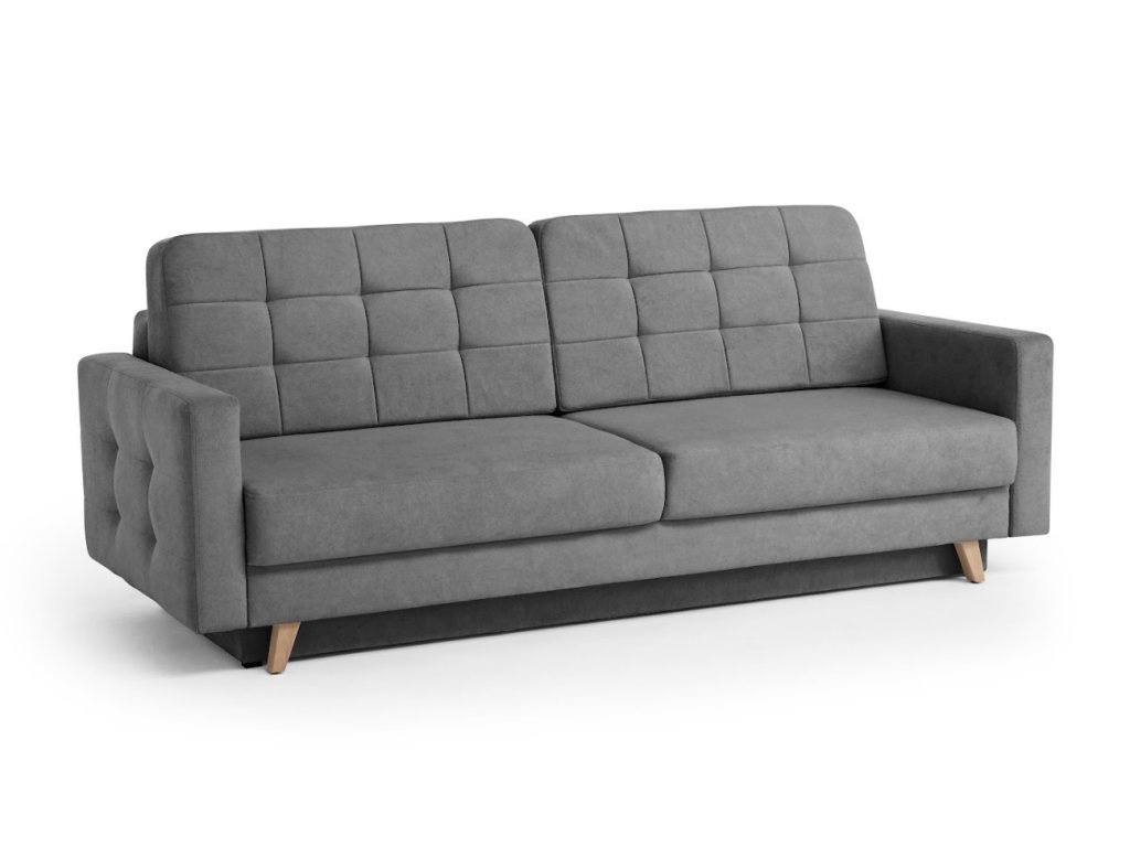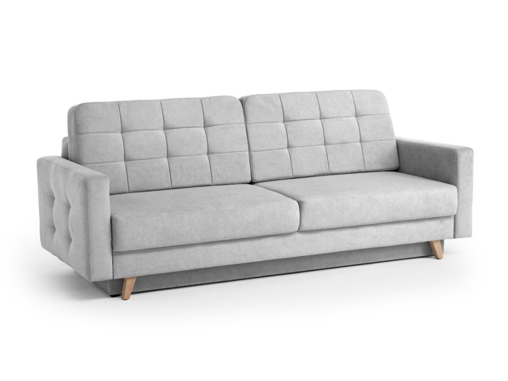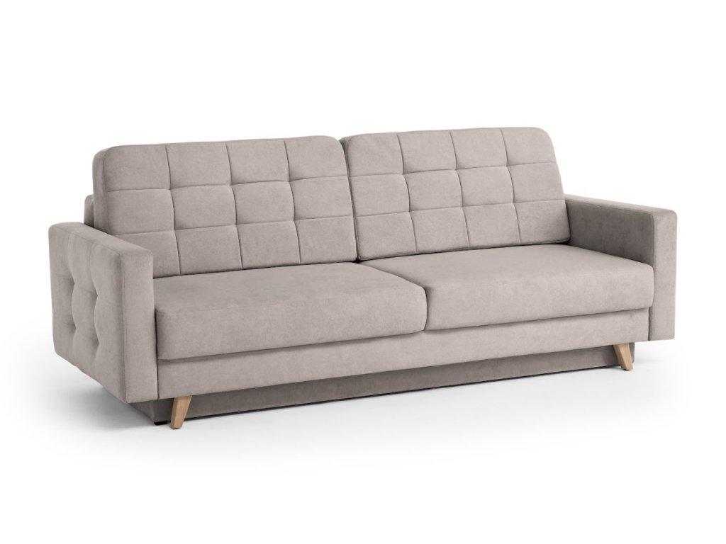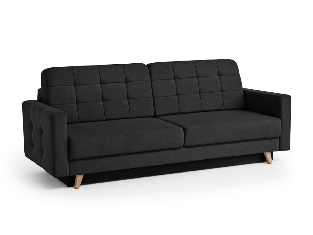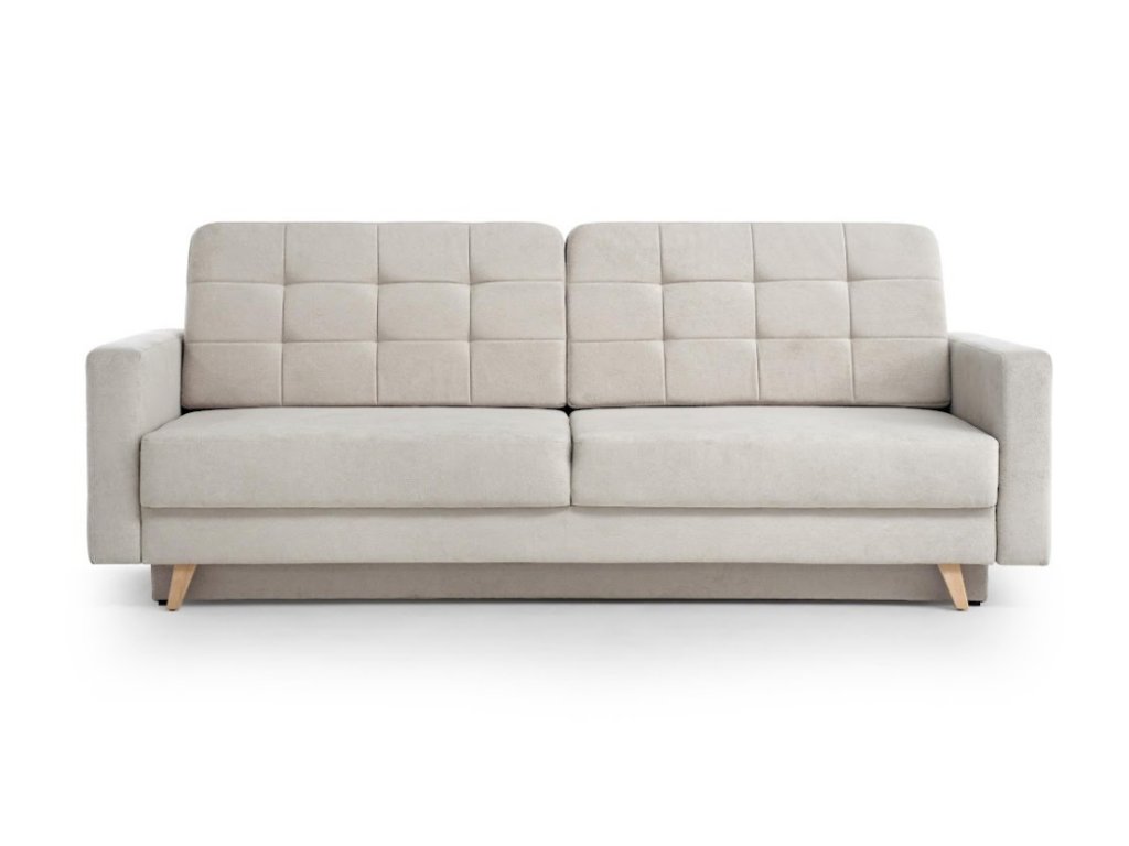 Elegantní rozkládací pohovka Vegas New, která kombinuje jednoduchost skandinávského designu. Její předností je hluboký sedák se zdobným prošíváním a pohodlné opěradlo. Sedačka je rozkládací s úložným prostorem .Pohovka je celočalouněná proto ji můžete postavit kamkoliv do prostoru. Pohovka je vyrobena v potahové látce Velo.