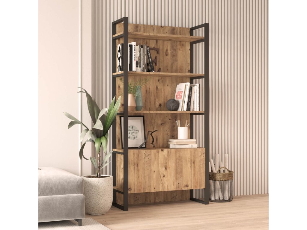 Je stylizovaný do loftových a industriálních motivů, které dodají vašemu interiéru moderní, ale zároveň teplý a příjemný pocit. S rozměry 180 x 90 x 29,5 cm, je tento regál ideální pro ukázání vašich nejoblíbenějších knih, dekorací, nebo i pro uložení denních potřeb.