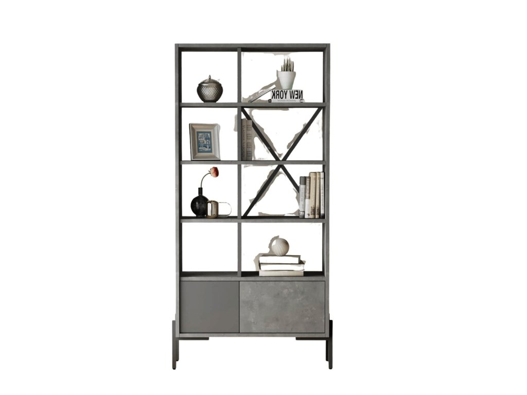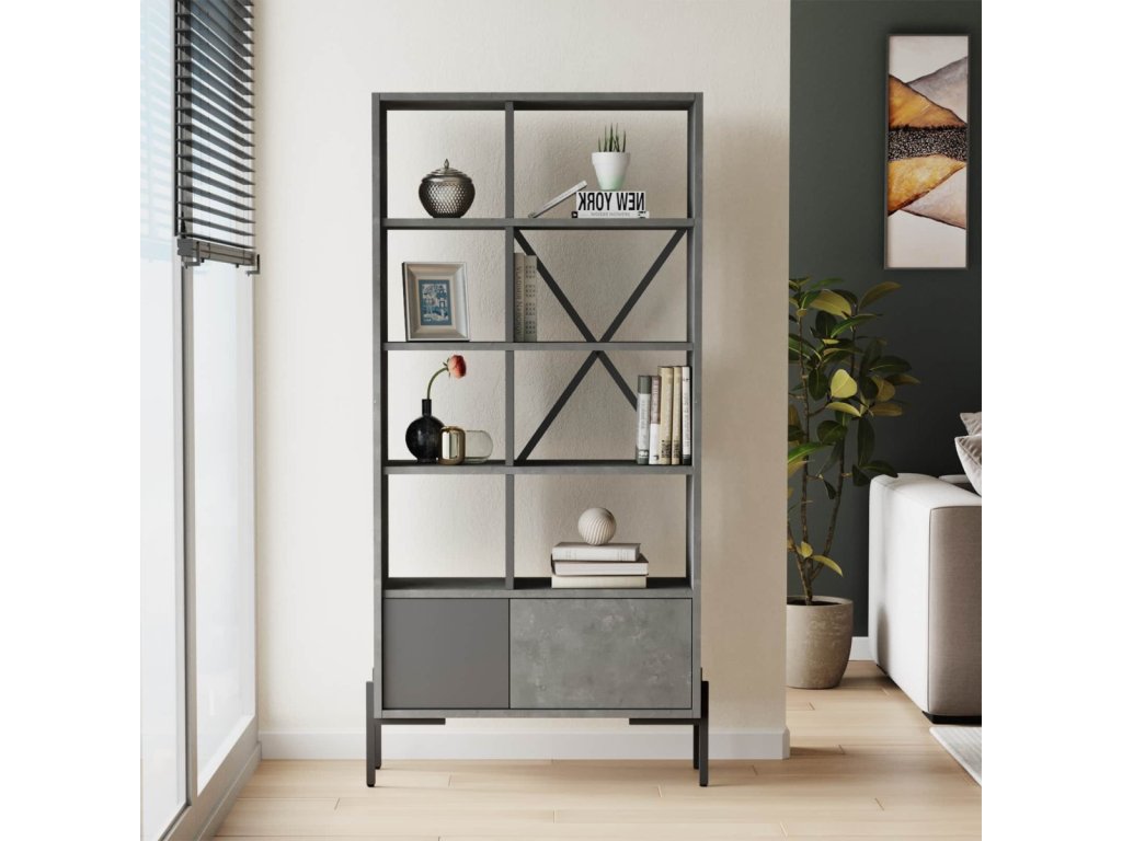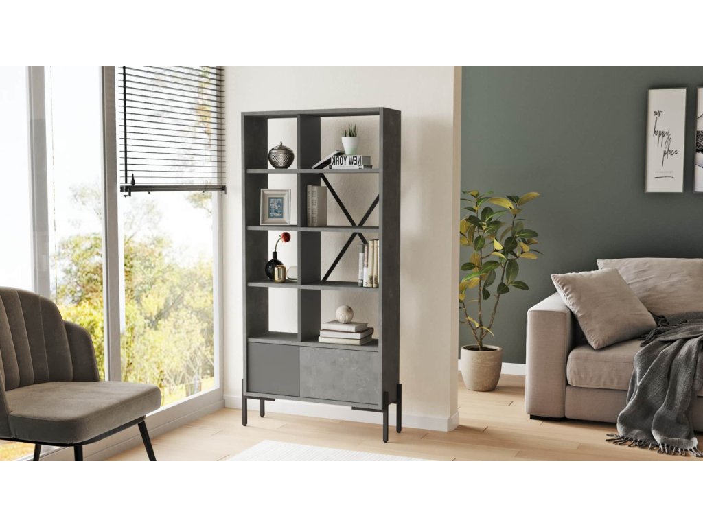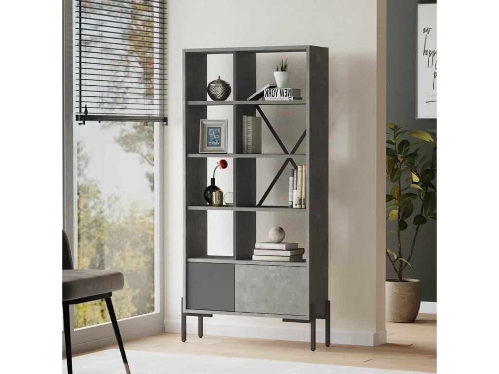 BARTU regál, barva beton + antracit