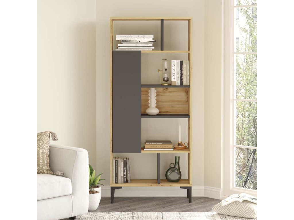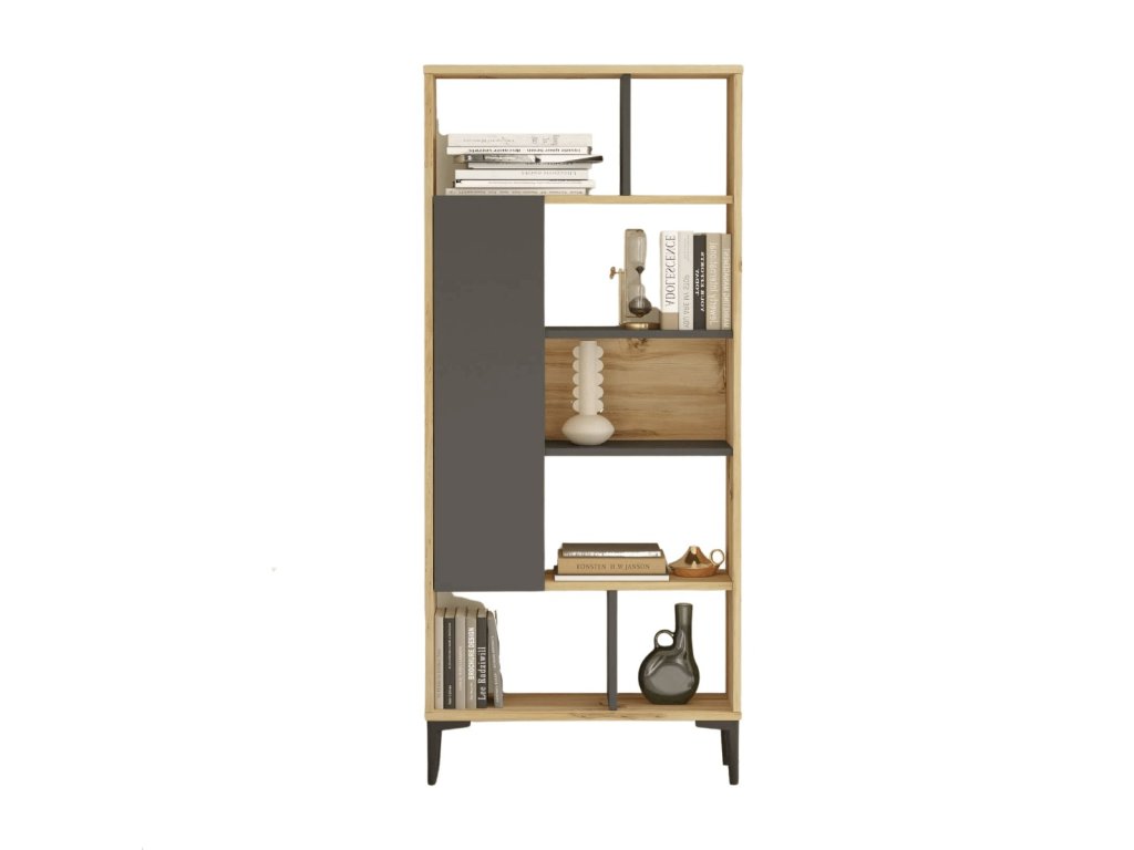 - 5 polic: Regál je vybaven policemi, což zajišťuje dostatek prostoru pro uskladnění knih, ozdob nebo jiných předmětů.
